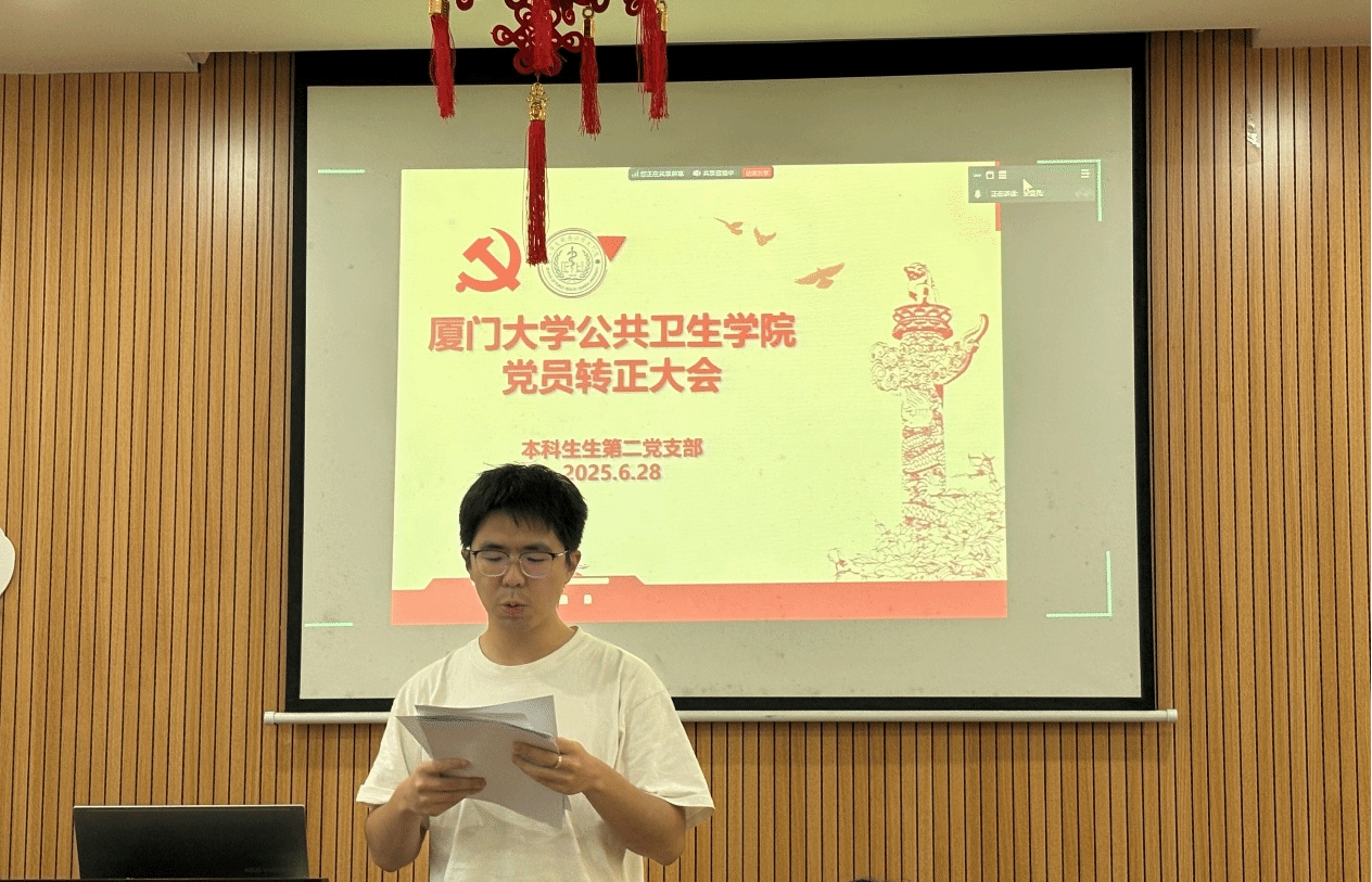 6月22日,学院本科生第二党支部于映雪2-104“一站式”学生社区召开预备党员转正大会。会议由党支部副书记刘铭达同志主持,全体党员参会,对杨欣怡等7位预备党员的转正事宜进行讨论与表决。