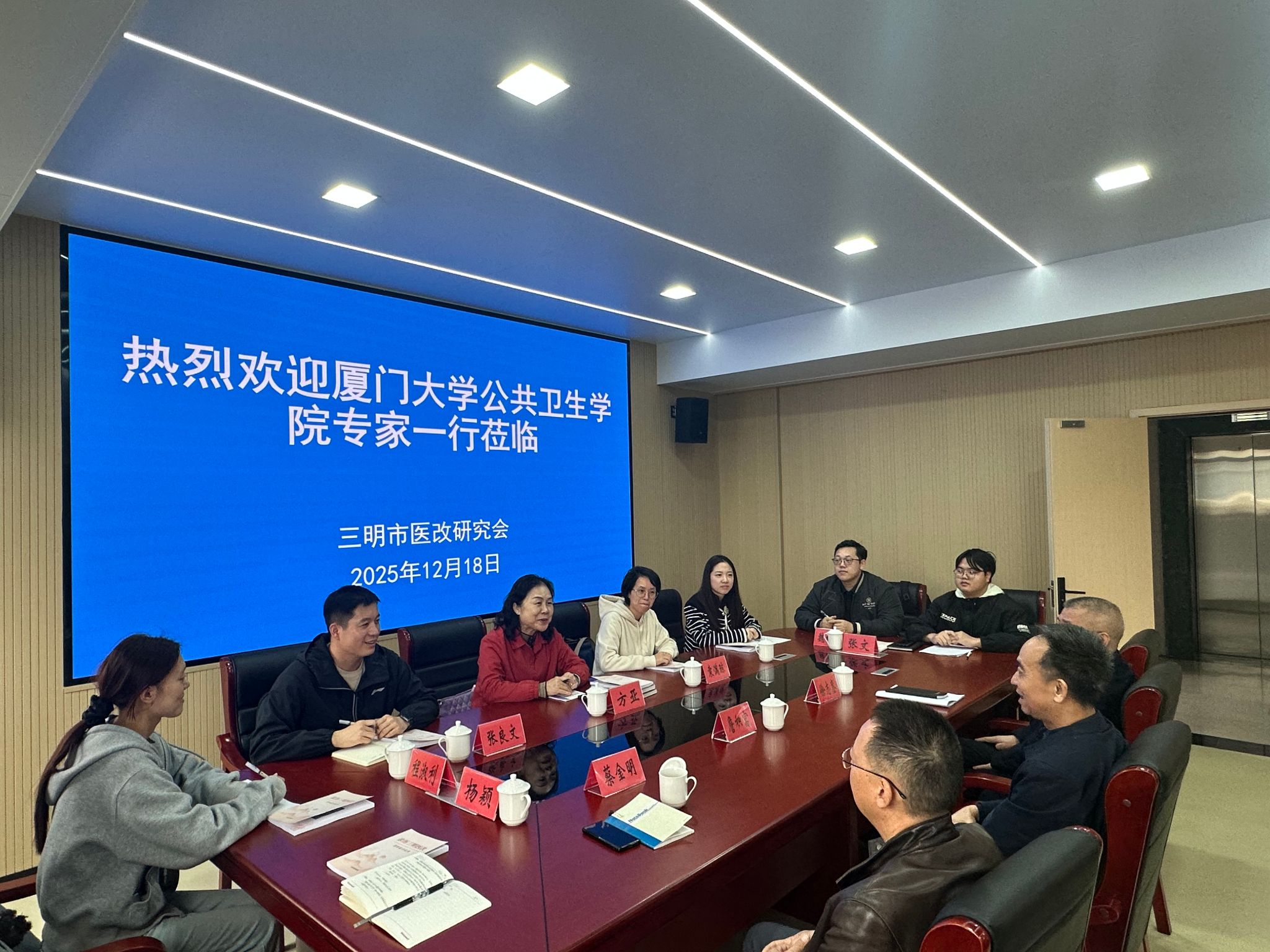 12月18日,我院党委委员、预防医学系主任、卫生经济政策暨老年健康研究中心主任方亚教授一行赴三明市医改研究会开展调研与交流。双方围绕深化医改经验总结与健康政策创新等议题进行座谈,并结合党史学习教育,推动科研实践与使命担当深度融合。