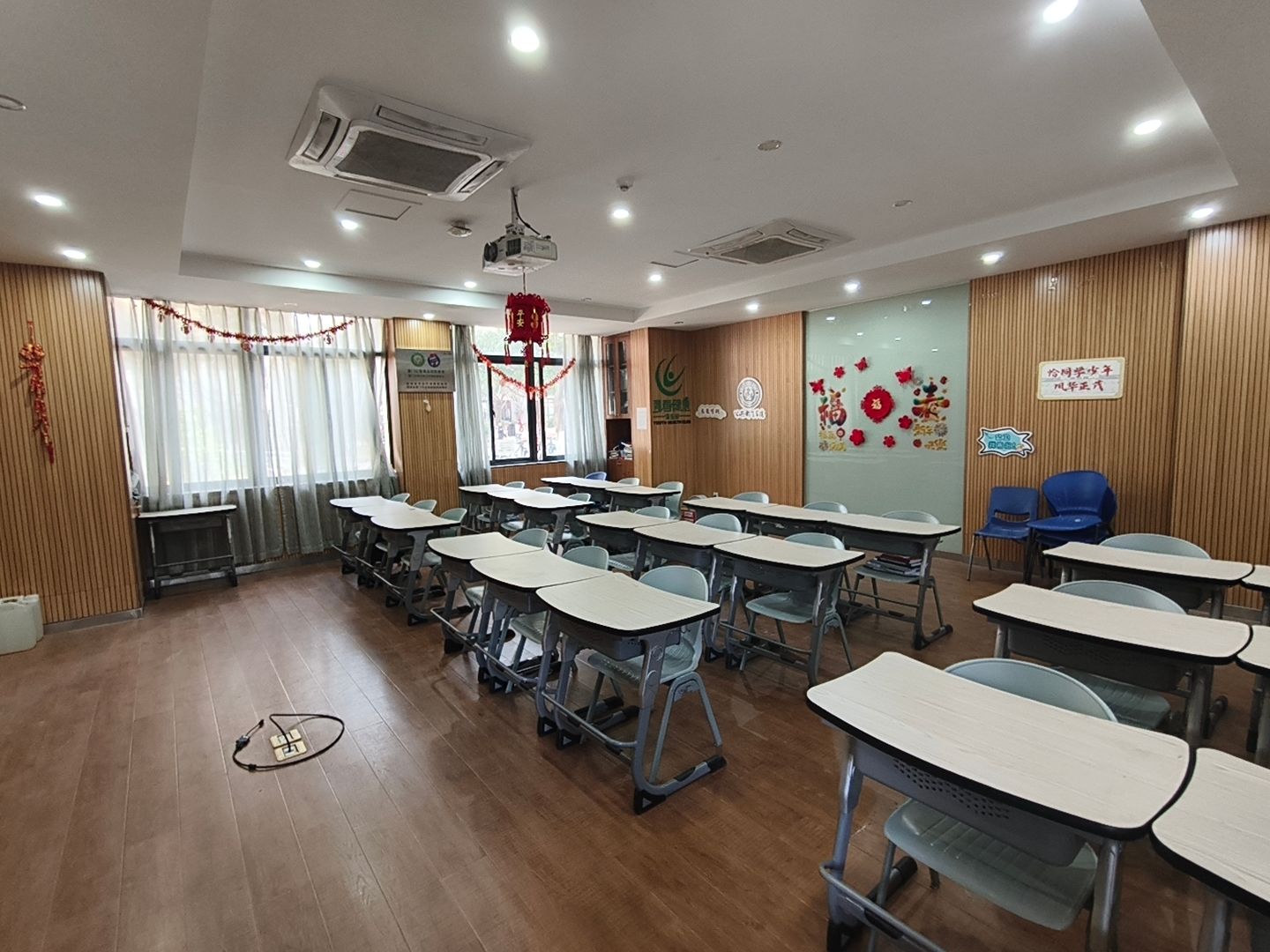 活动现场,师生党员分工有序、热情投入。清扫组对社区活动室、走廊、自习区等区域进行了全面清洁,使社区环境焕然一新,为同学们创造了更加舒心的学习生活空间。装饰组一同剪制窗花,并将窗花与满载祝福的春联、福字张贴在活动室门窗上,为社区增添了浓厚的新春气息。活动中,师生党员还分享了各自家乡的新春习俗与传统文化知识,现场气氛融洽,在劳动实践中感受传统文化魅力,在交流互动中深化师生情谊。