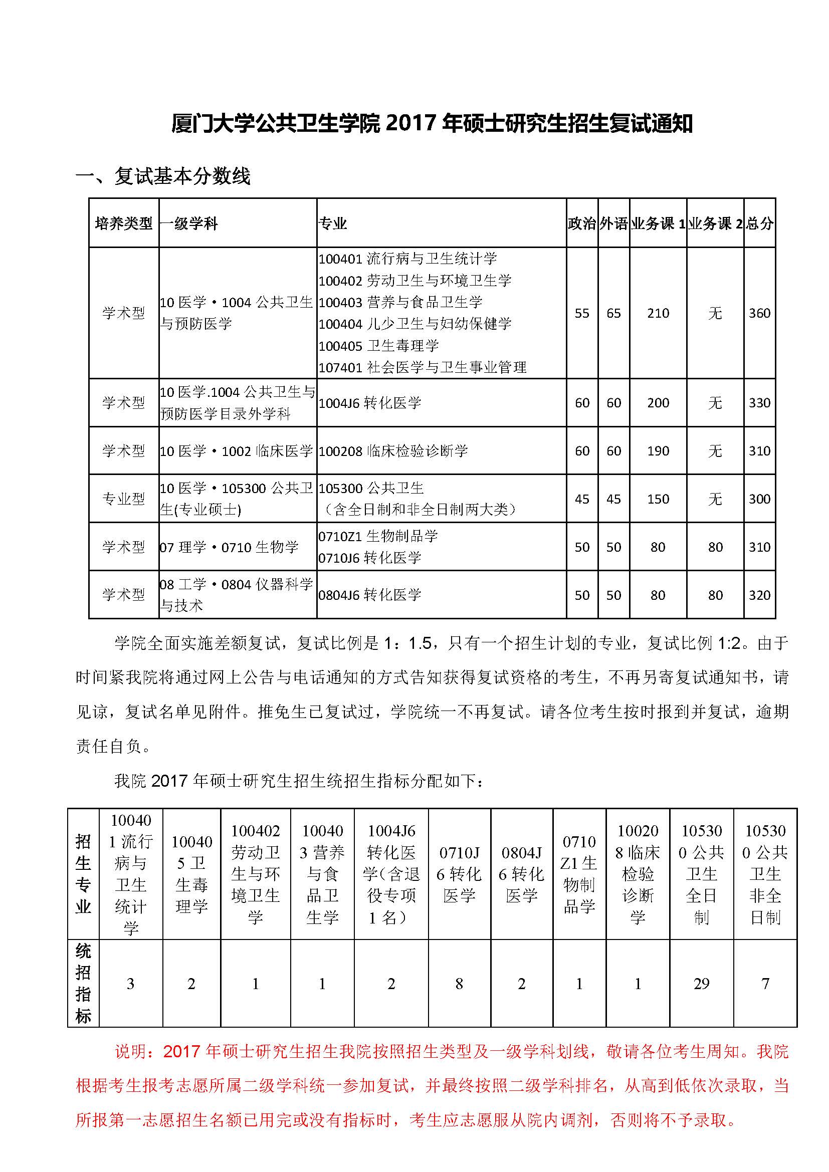 四、其他未尽事宜,参照《厦门大学2017年硕士研究生复试录取工作意见》执行。