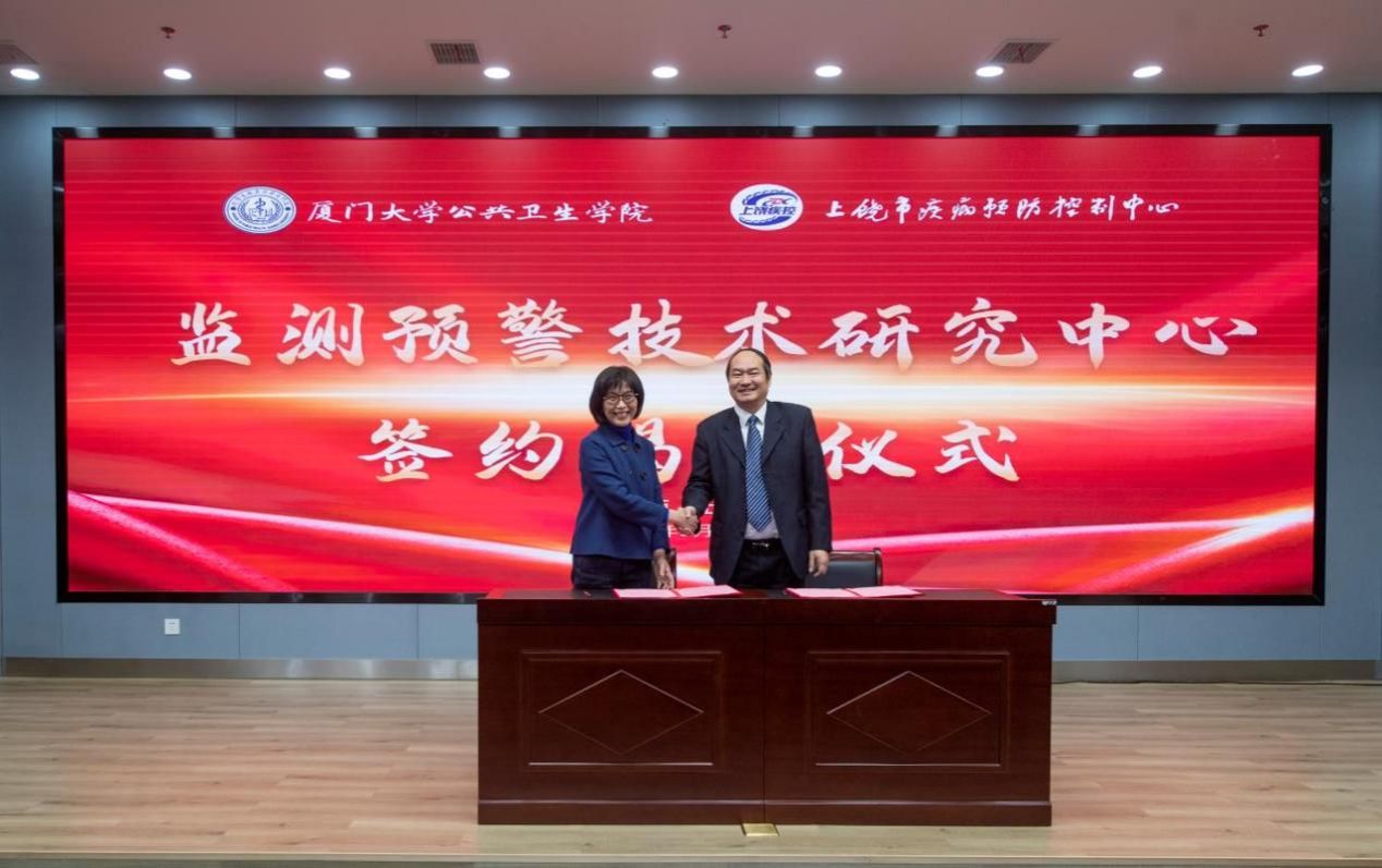 最后,双方进行了签约仪式,并为“厦门大学公共卫生学院-上饶市疾病预防控制中心共建监测预警技术研究中心”揭牌。