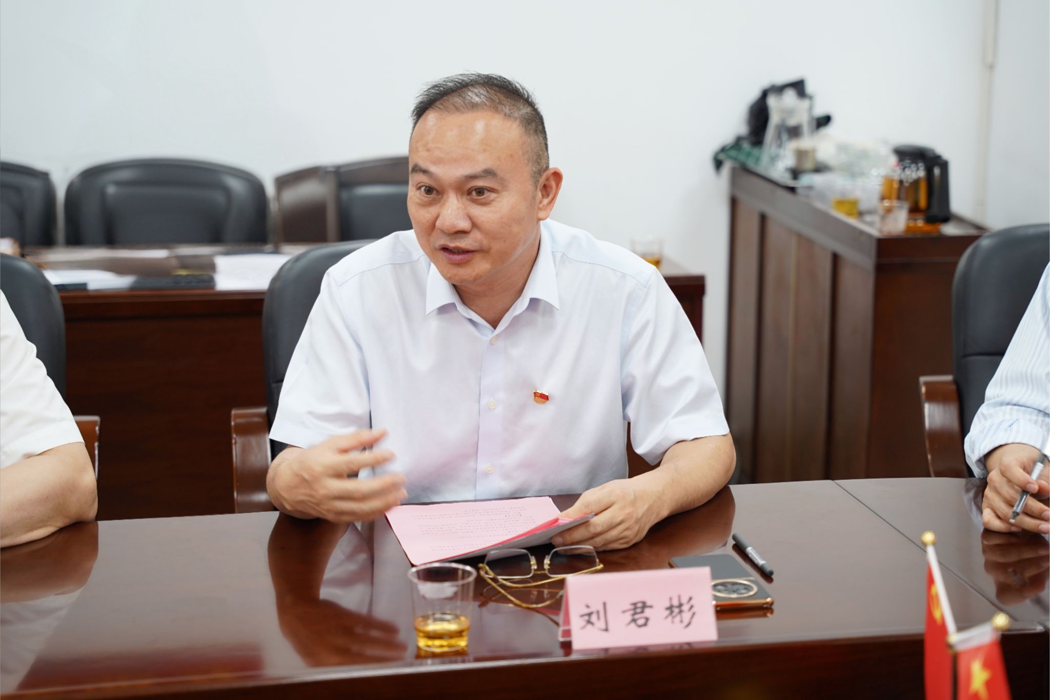 刘君彬对企业的到来表示欢迎,并指出此次共建将打造"党建+产学研"协同创新平台,通过“理论共学、成果共化、人才共育”模式推动科研转化与产业升级融合。