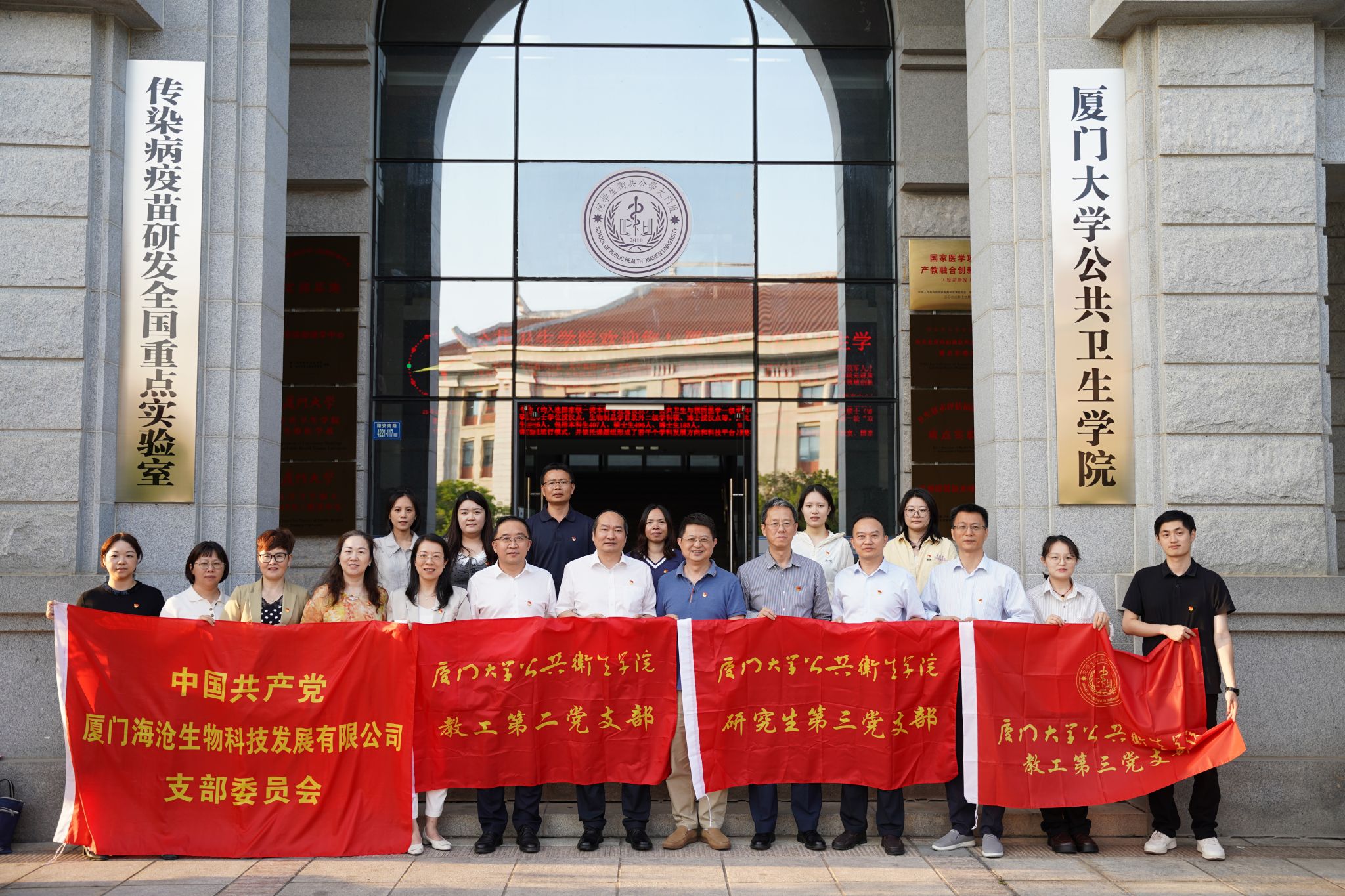 海沧发展集团党委副书记、董事、总经理吕玉宝,党委副书记、董事、工联会主席张颖,生物科技公司党支部书记、董事、总经理李晔一行出席仪式,我院党委书记张琥,院长、党委副书记、教工第二党支部书记张军,党委副书记刘君彬,工会主席、P3实验室副主任、教工第二党支部副书记陈毅歆,办公室主任、教工第三党支部副书记魏丽华,研究生第三党支部书记史玉瑾等参与,仪式由学院党委副书记刘君彬主持。