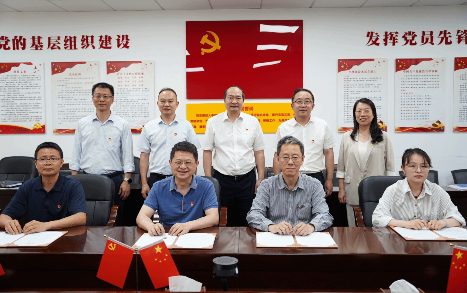 签约环节,吕玉宝、张军、魏丽华、史玉瑾作为双方代表签署共建协议。此次校企合作将充分发挥党建引领作用,通过资源共享、优势互补等方式,共同提升生物医药产业竞争力。