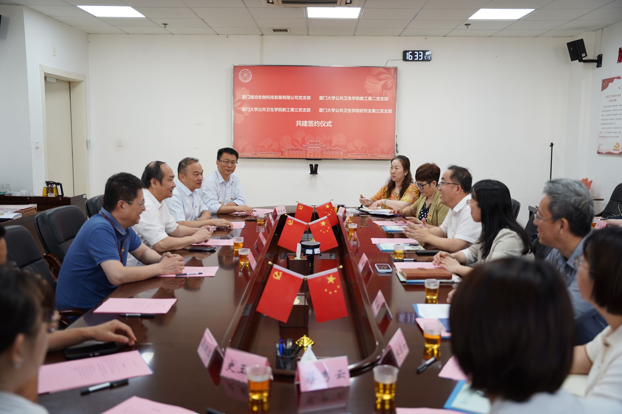 5月13日,我院与厦门海沧发展集团有限公司生物科技公司党支部共建签约仪式在曾宪梓楼302会议室举行。