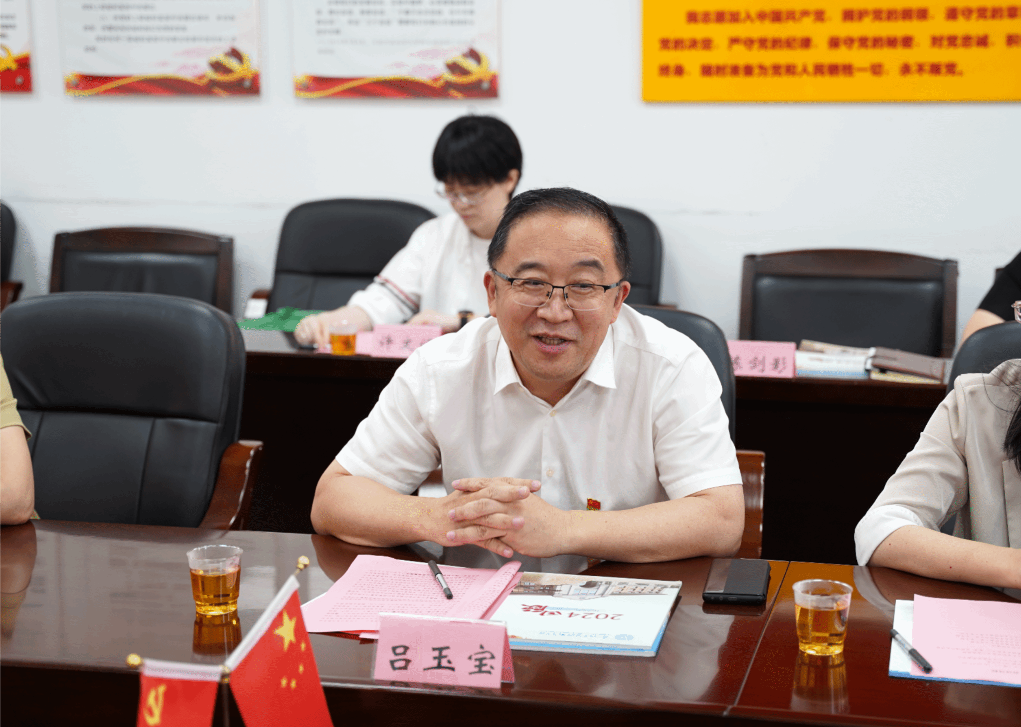 吕玉宝对学院科研创新成果表示赞赏,并介绍了海发集团的发展情况。他表示,期待将双方党的政治优势和组织优势转化为推动产教融合的“黏合剂”、科研成果转化的“催化剂”以及生物医药产业发展的“助推器”。