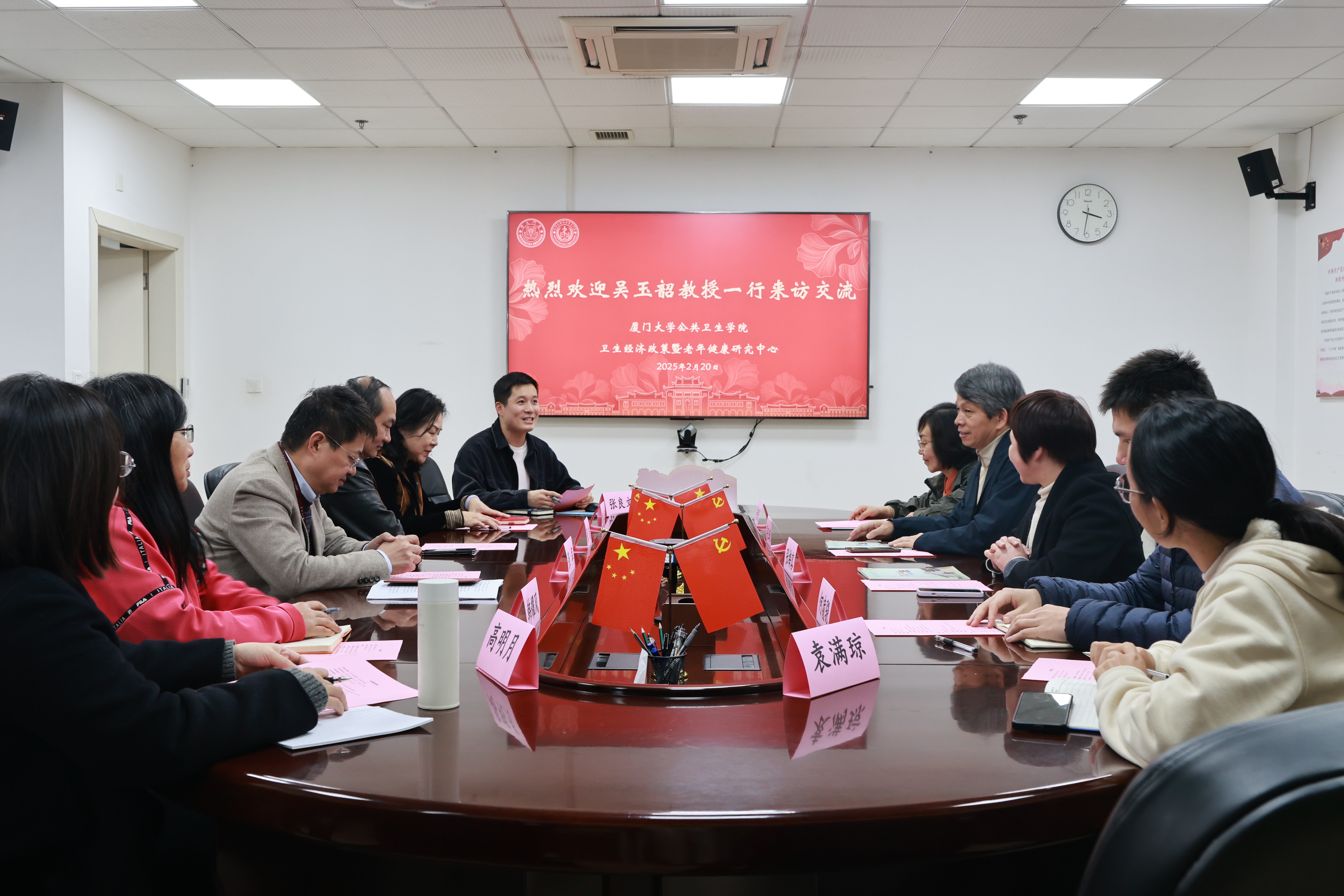 2月20日,复旦大学老龄研究院副院长、中国社会福利与养老服务协会会长吴玉韶教授,福建五福圆养老产业发展有限公司董事长张梅容,民政部民政职业大学胡艳霞一行来访我院。我院党委书记张琥、院长张军、卫生经济政策暨老年健康研究中心主任方亚及相关师生代表参加座谈。双方围绕银龄健康与产业发展等议题展开交流。