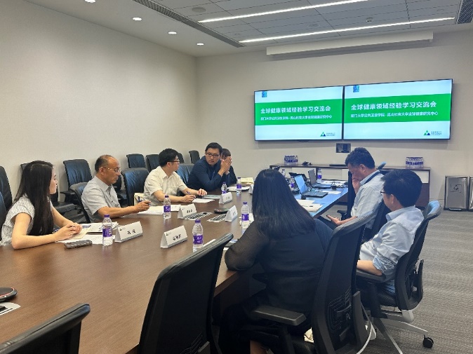 2024年6月18日,公共卫生学院全球健康团队成员周水森讲座教授、刘刚教授、博士后芮佳等一行赴昆山杜克大学全球健康中心开展合作交流,学习借鉴对方成功经验,探讨双方未来合作方向,为公共卫生学院全球健康中心筹建寻求思路。昆山杜克大学全球健康项目联合主任汤胜蓝教授、刘运国教授及科研教学、国际合作、疫苗交付创新实验室等负责人参与交流。