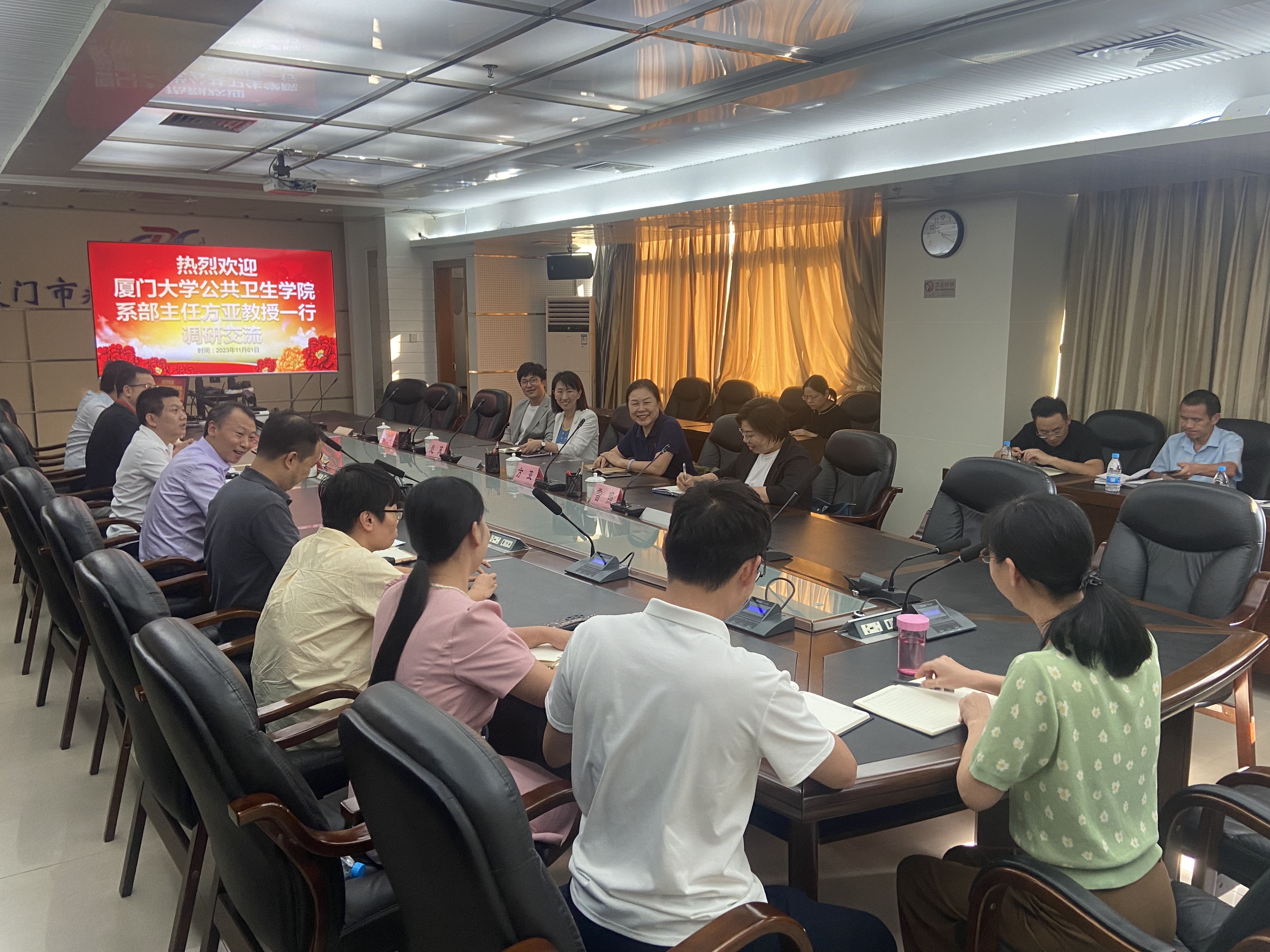 为切实提高公共卫生人才培养质量、深入了解预防医学专业本科生实习情况,公共卫生学院预防医学系主任方亚教授、副主任赵苒副教授、团委副书记周钧庭、系部秘书雷照一行于11月1日赴厦门市疾病预防控制中心(以下简称“中心”)开展实习基地走访调研工作。厦门市卫健委副主任、市疾控局局长、市疾控党委副书记、中心主任王德猛,中心副主任郭志南,业务质量管理处负责人陈泽辉等出席会议,中心各业务科室实习带教教师代表参与座谈。