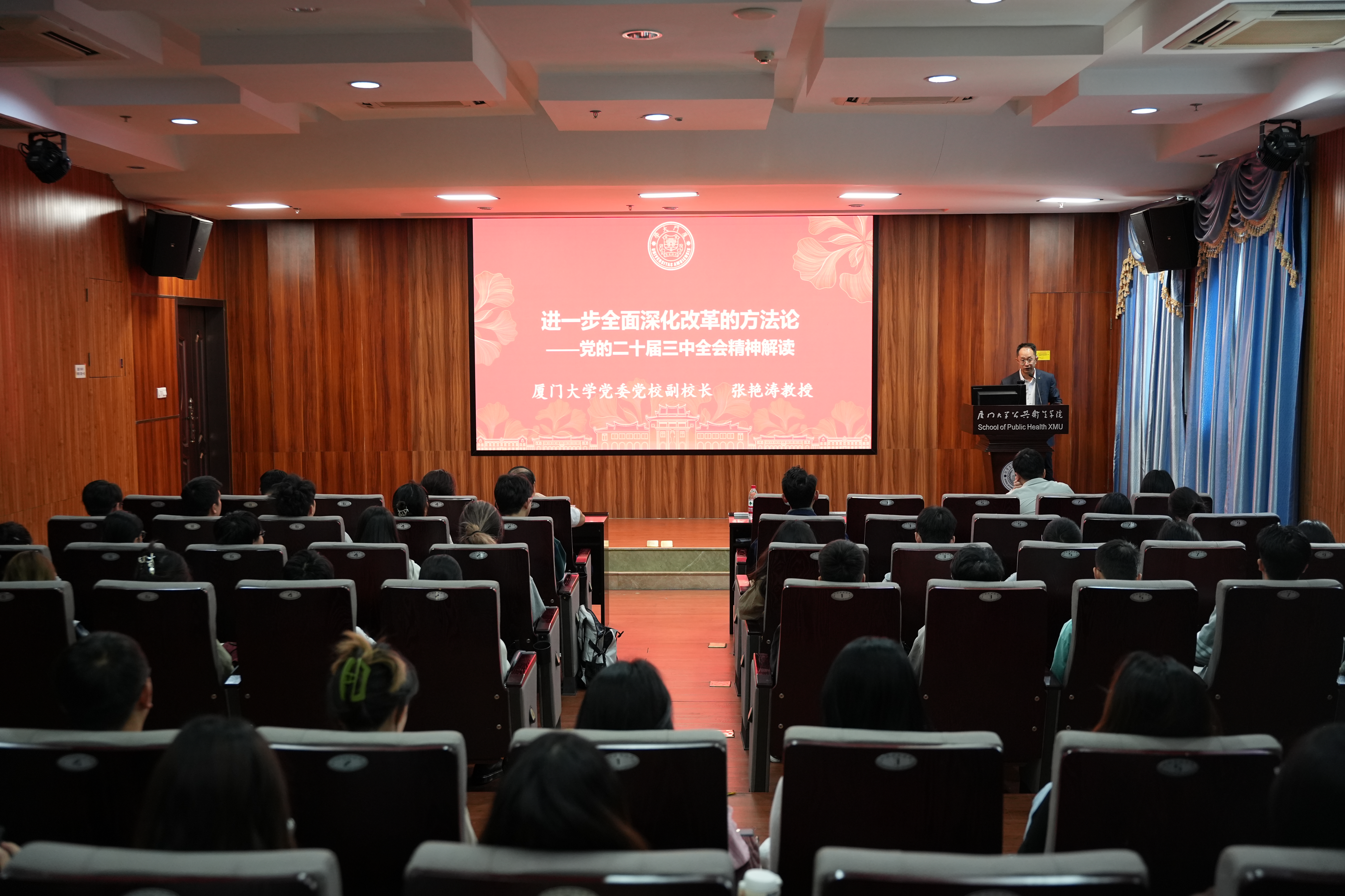 为深入学习贯彻习近平新时代中国特色社会主义思想,贯彻落实党的二十届三中全会精神,进一步提高新发展党员和入党积极分子的思想政治素质和理论水平,坚定理想信念,2024年11月8日上午,厦门大学公共卫生学院“红心向党”成长营开班式、团校暨学生骨干培训第二次理论学习在曾宪梓楼101顺利举行。厦门大学党委党校常务副校长、马克思主义学院教授张艳涛,学院党委书记张琥出席开班仪式。学院本研100多名预备党员、入党积极分子和学生干部参加此次培训。