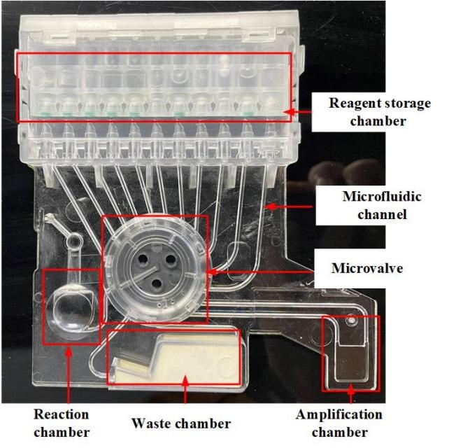 核酸检测直接面向病原体的遗传物质,具有高灵敏度和高特异性的特点,特别在传染性疾病筛查诊断中不可或缺。然而,当前常用的实验室核酸检测方法需要在专业实验室由经过严格培训的检验人员进行,使用多台仪器联合检测,手工操作步骤多,耗时费力,存在污染风险,总检测时间长达3-5小时,无法实现现场快速检测和“样品进,结果出”的效果。我院夏宁邵教授团队设计开发出一种可用于核酸现场快速检测的微流控芯片,引入动态密封、超声辅助和先进控制方法,整合了试剂预封装存储、提取、快速qPCR扩增和实时荧光检测等多项技术,配合自行研制的快速检测仪器共同使用,能够在30分钟内实现包括完整提取流程与45个扩增循环的全自动核酸定量检测,且灵敏度与现行临床标准一致。通过结构设计的创新,实现了开模注塑工艺生产,相比常规微流控芯片具有造价低廉、可大批量生产的优势,应用前景广阔。