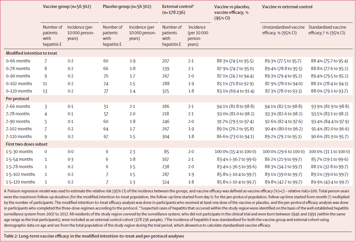 【表-戊肝疫苗长期有效性结果表】