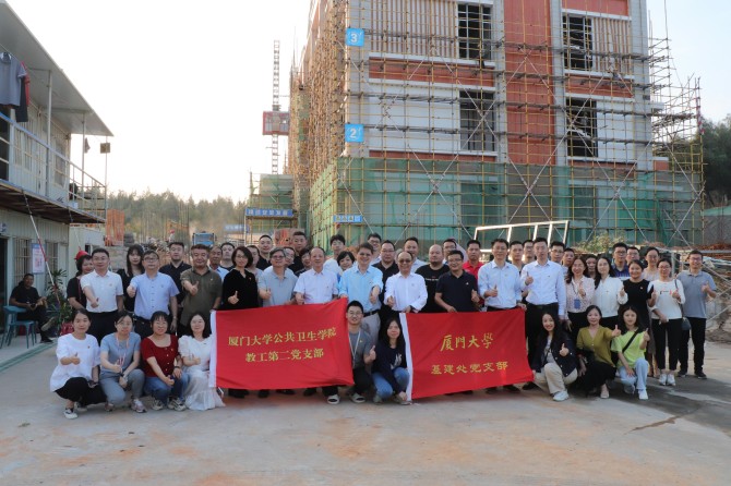 会后,两个支部成员一同前往P3实验室建设工地,参观实验室建设进展。看到即将建成落地的大楼,大家纷纷表示,很高兴见证两个支部的通力合作即将开花结果,对未来教学科研发展充满信心。