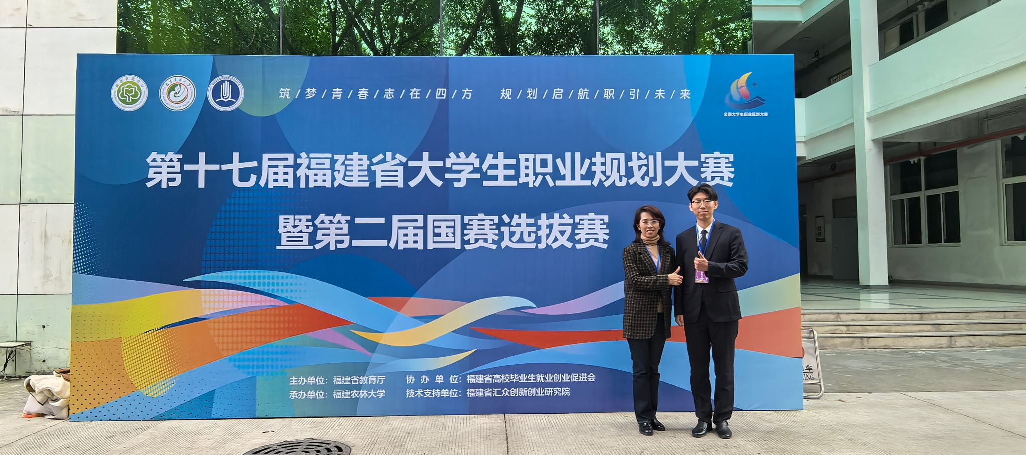 近日,第十七届福建省大学生职业规划大赛决赛顺利举行。本届大赛由福建省教育厅主办,吸引了全省各高校优秀学子参与。经过初赛、复赛等多轮选拔,我院学子王楷在就业赛道研究生组中斩获金奖,学院党委副书记庄曦、袁权教授获评“优秀指导教师”。