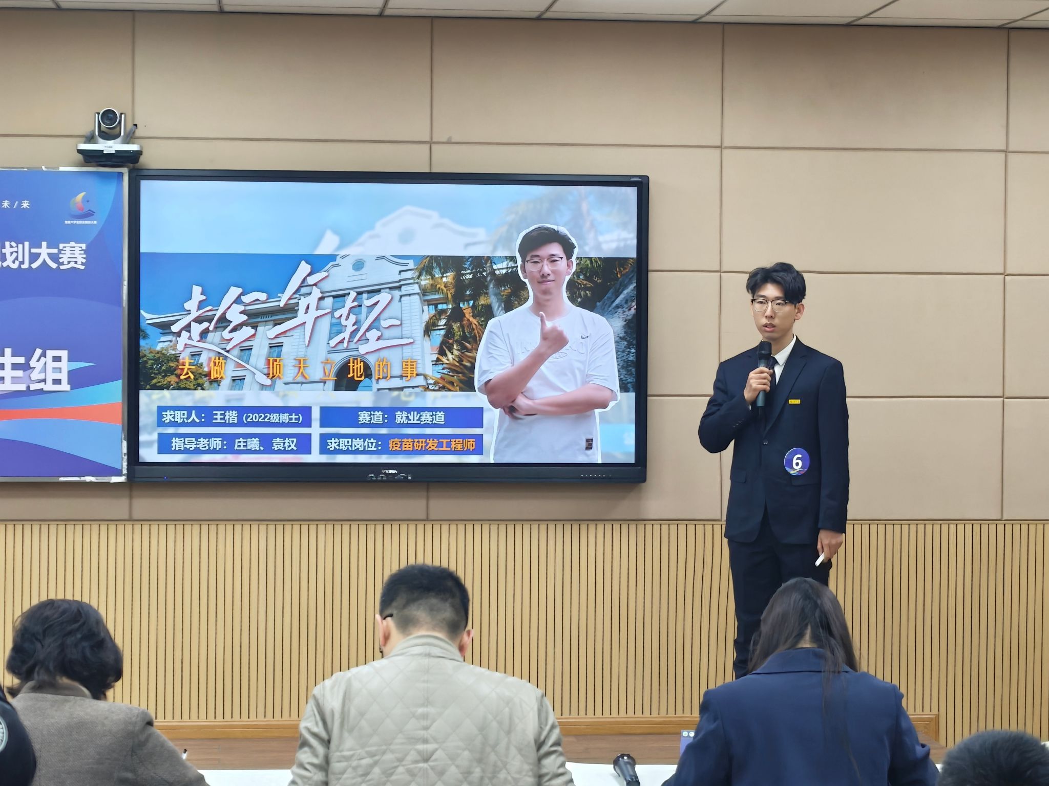 决赛中,王楷同学以“成为疫苗研发工程师”为职业目标,紧密结合公共卫生领域发展需求系统阐述了职业规划路径,充分体现了我院“服务健康中国”的人才培养特色。庄曦、袁权凭借丰富的经验和专业知识,为参赛学生提供了全方位指导与支持。