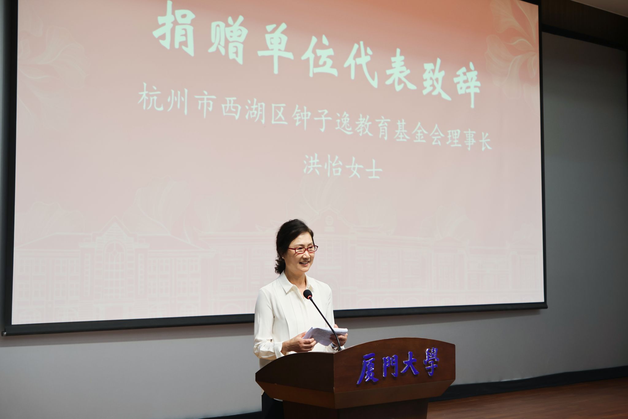 洪怡在致辞中指出,学院十四年来取得的成果令人瞩目,此次表彰是对师生优秀表现的充分肯定。她强调,钟子逸教育基金会将持续深化与学院的合作,助力学院发展和人才培养。
