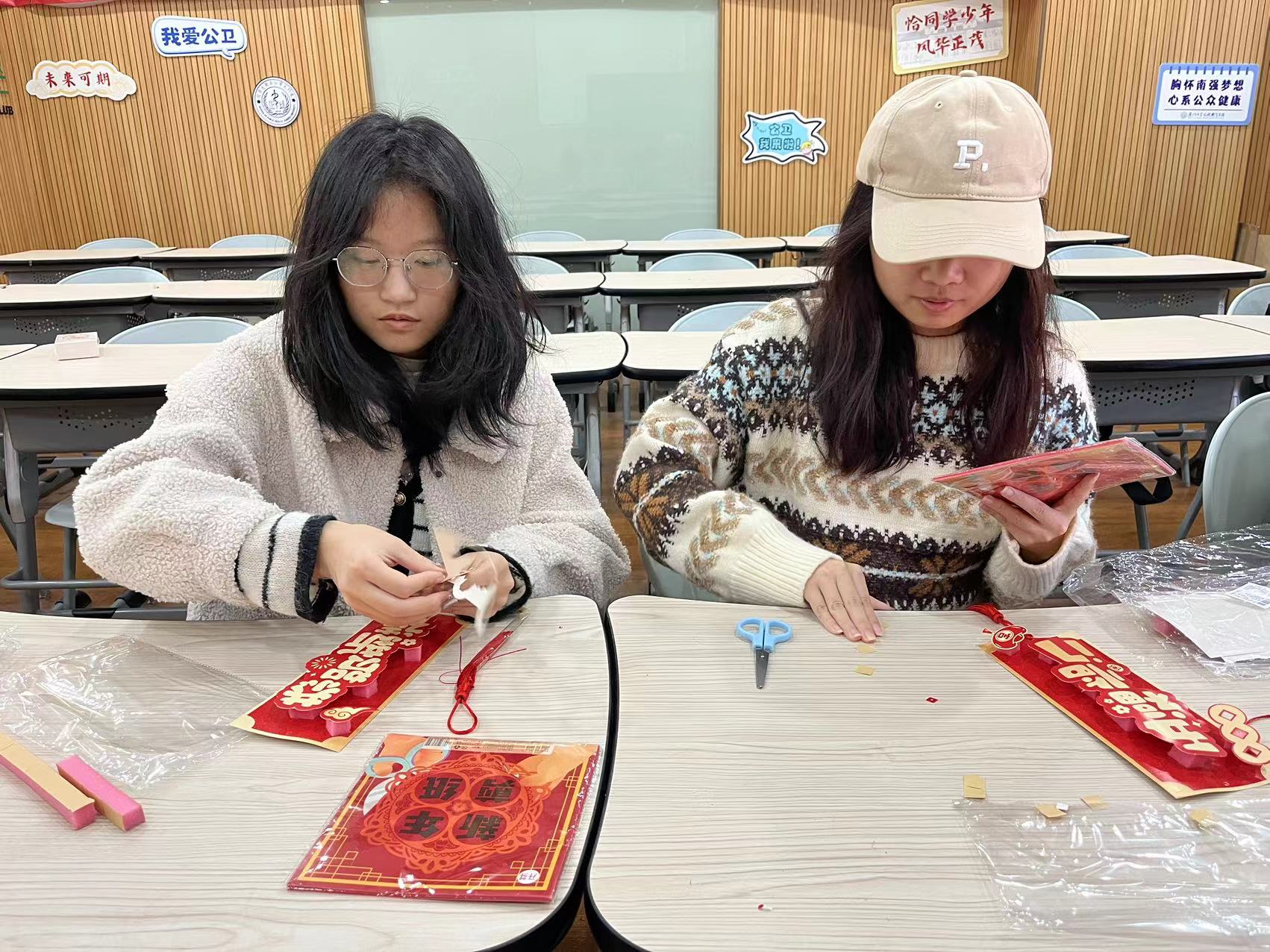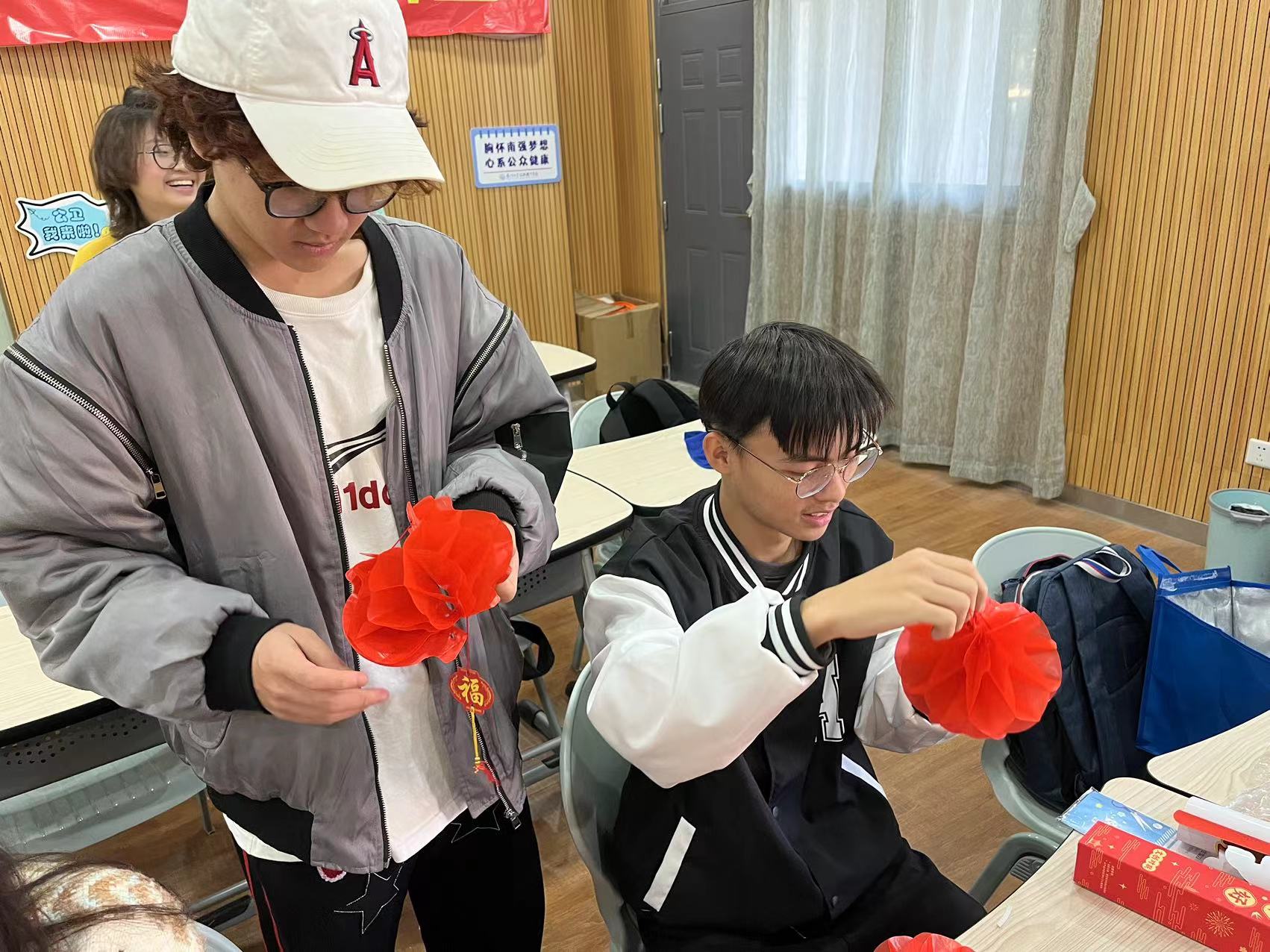 2023级的本科生赵景涵同学表示:“这是很开心很幸福的一个下午,大家一起打扫卫生、贴对联、剪纸、挂灯笼……一起慢慢装扮好我们的小家,也让我提前感受到了浓浓的过年氛围!用手中的小剪刀把一张张彩纸变成各式各样的小动物、红灯笼、中国结……真的是件很有成就感的事,也让我在快节奏的生活里慢下来找到了生活的点滴幸福。这次活动是假期生活很好的开端,也提前祝大家新年快乐啦!”