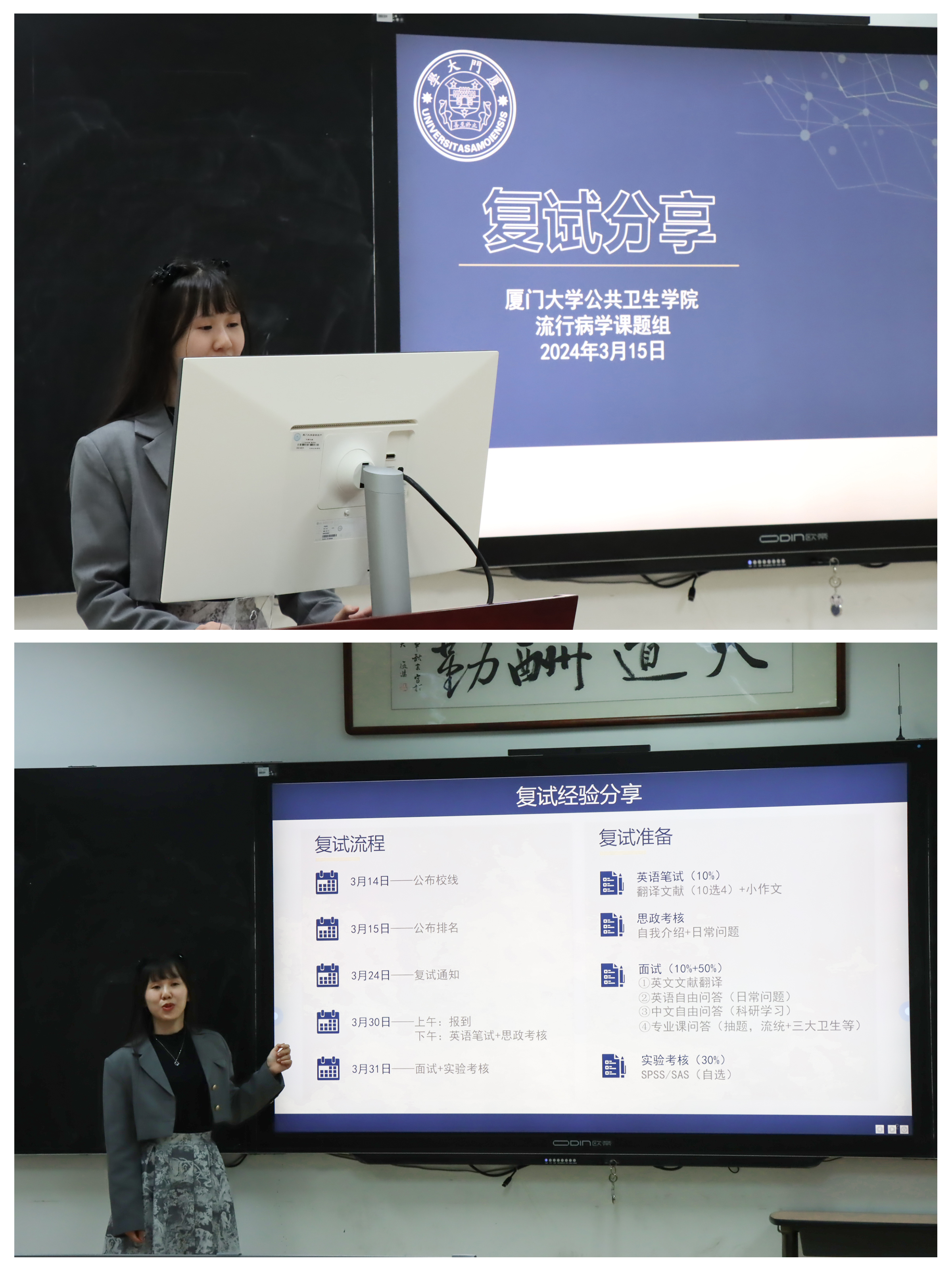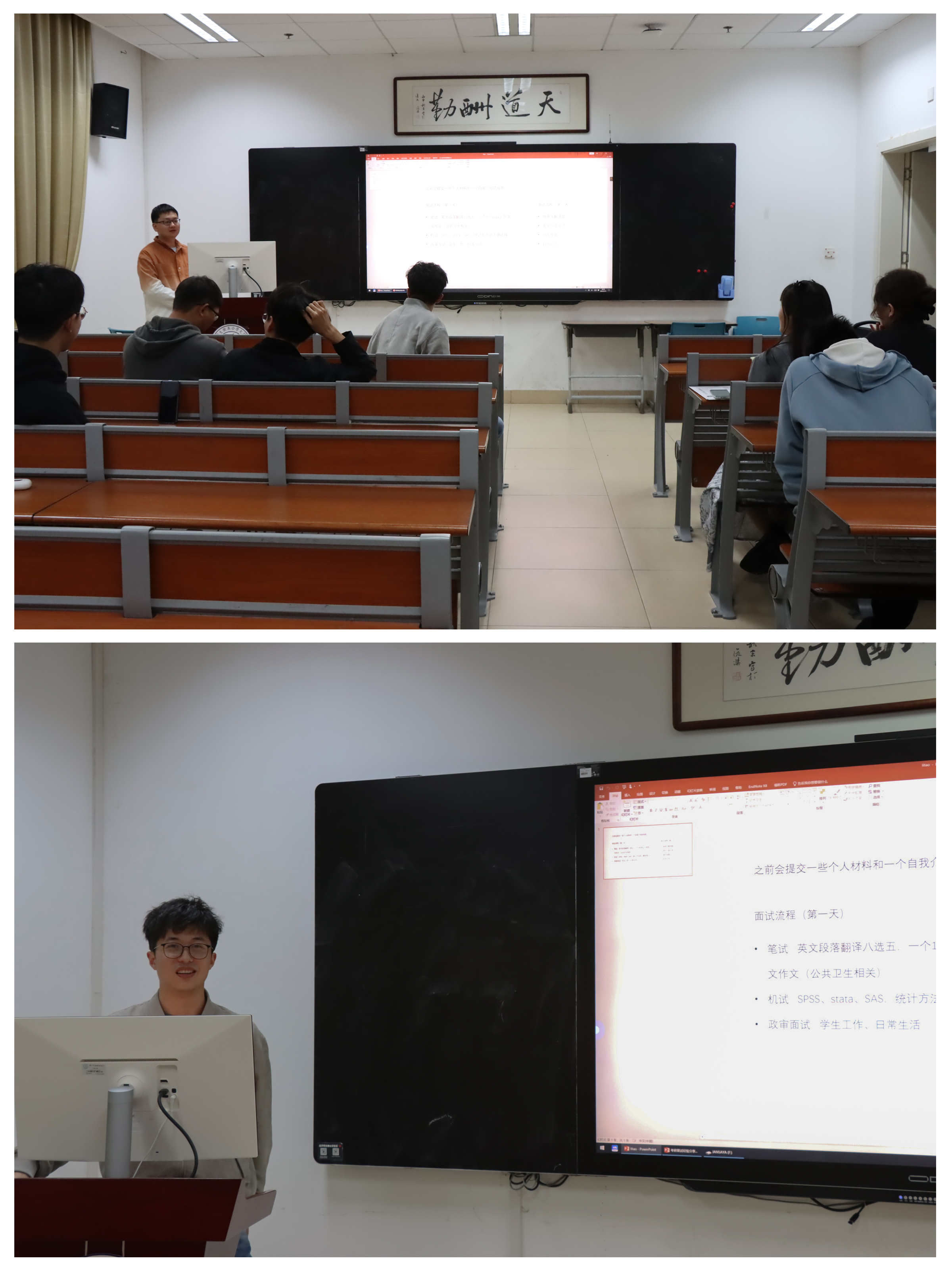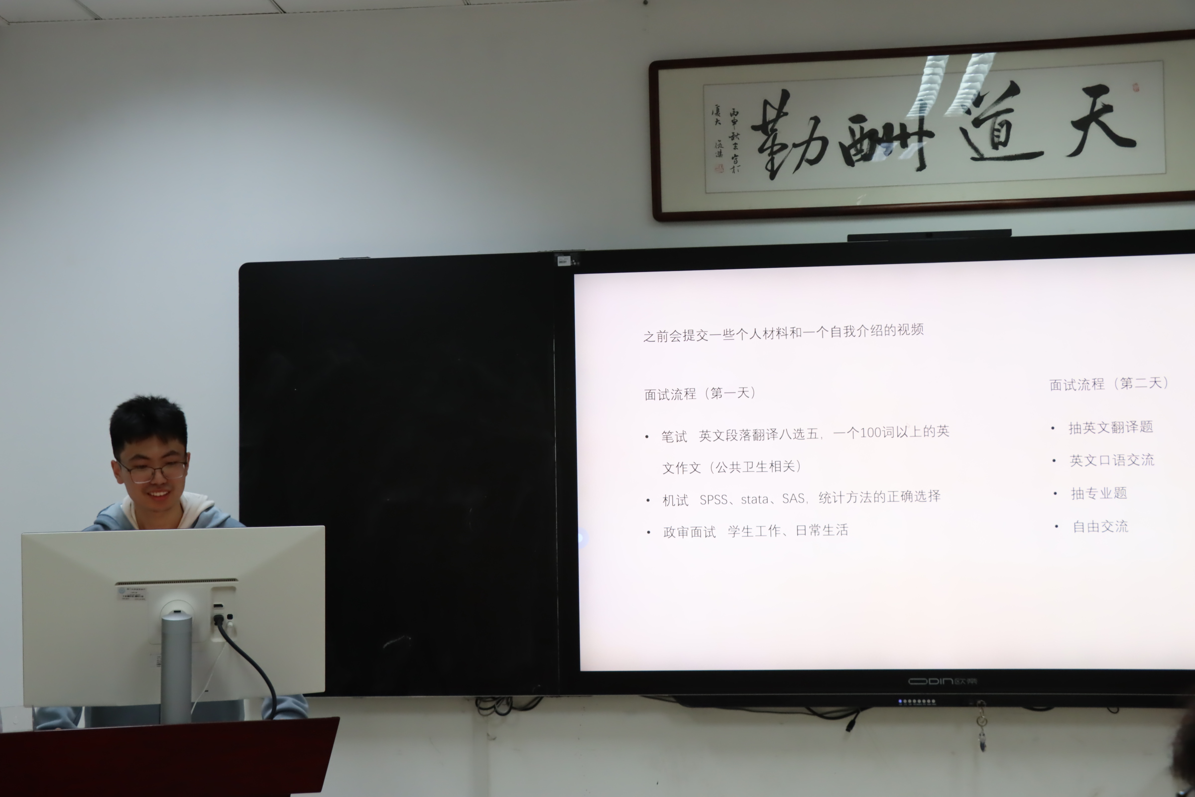 为帮助考研学子提升复试技巧,提高复试成功率,3月15日下午,公共卫生学院于曾宪梓楼105举办考研复试经验分享会,本次活动采用线上线下结合的方式开展。本次分享会邀请了2023年考研成功的吴雨晴、李涛和余炫三位同学进行分享。辅导员周钧庭及我院2024届考研学子参加本次活动。