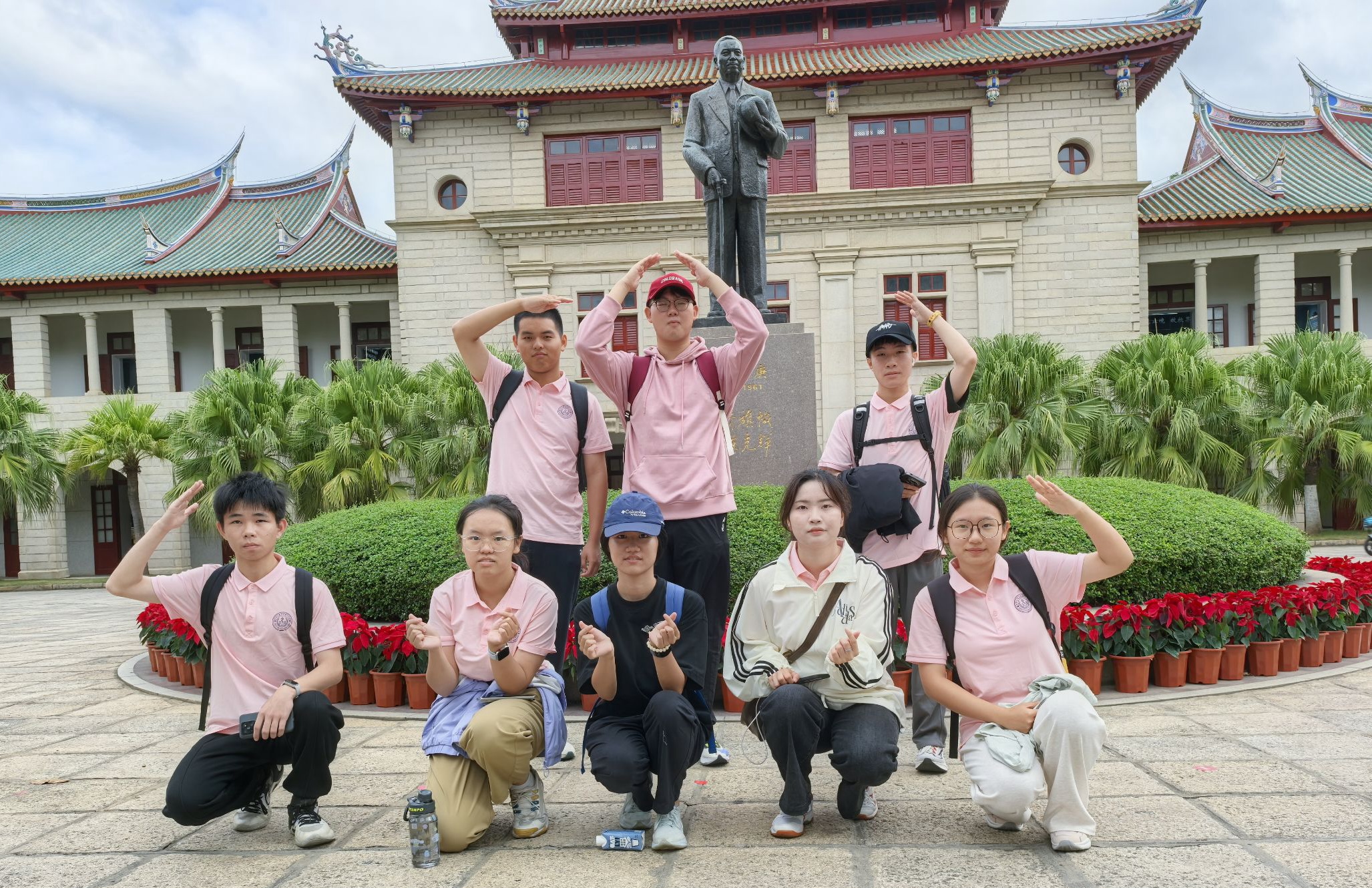 在隐藏打卡点处还设置了“嘉庚问答”环节,志愿者从陈嘉庚先生的办学历程、教学理念、爱国情怀和精神内涵等方面进行提问,来展现嘉庚先生坚定的办学信心和无私的民族信仰,帮助组员们进一步认识嘉庚文化,弘扬“忠公、诚毅、勤俭、创新”的伟大嘉庚精神。活动结束后,各小组先后在嘉庚铜像处打卡留影。
