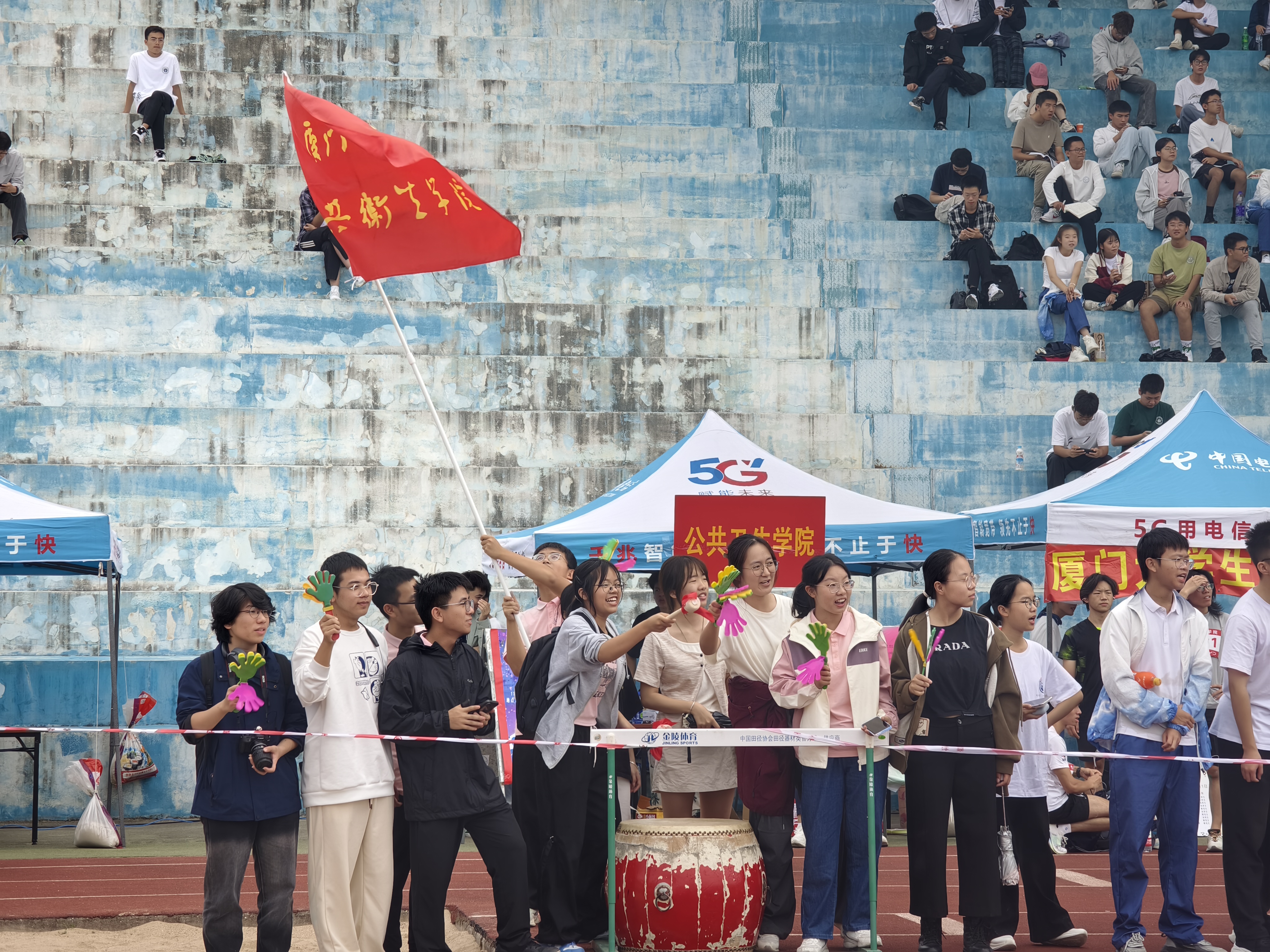 在运动员们的背后,更是少不了志愿者们的辛勤付出。随处可见的“红色马甲”为运动员们的赛场拼搏提供了坚实保障;大本营中的学生干部为运动会的有序进行保驾护航;赛道旁敲锣打鼓的公卫师生为运动健儿们呐喊助威;定点拍摄的采编人员则为健儿们定格荣耀瞬间。每位志愿者都在背后默默守护赛场,保证着运动会的顺利进行,他们是赛场上温暖的风景线,是运动会中别样的青春色彩。