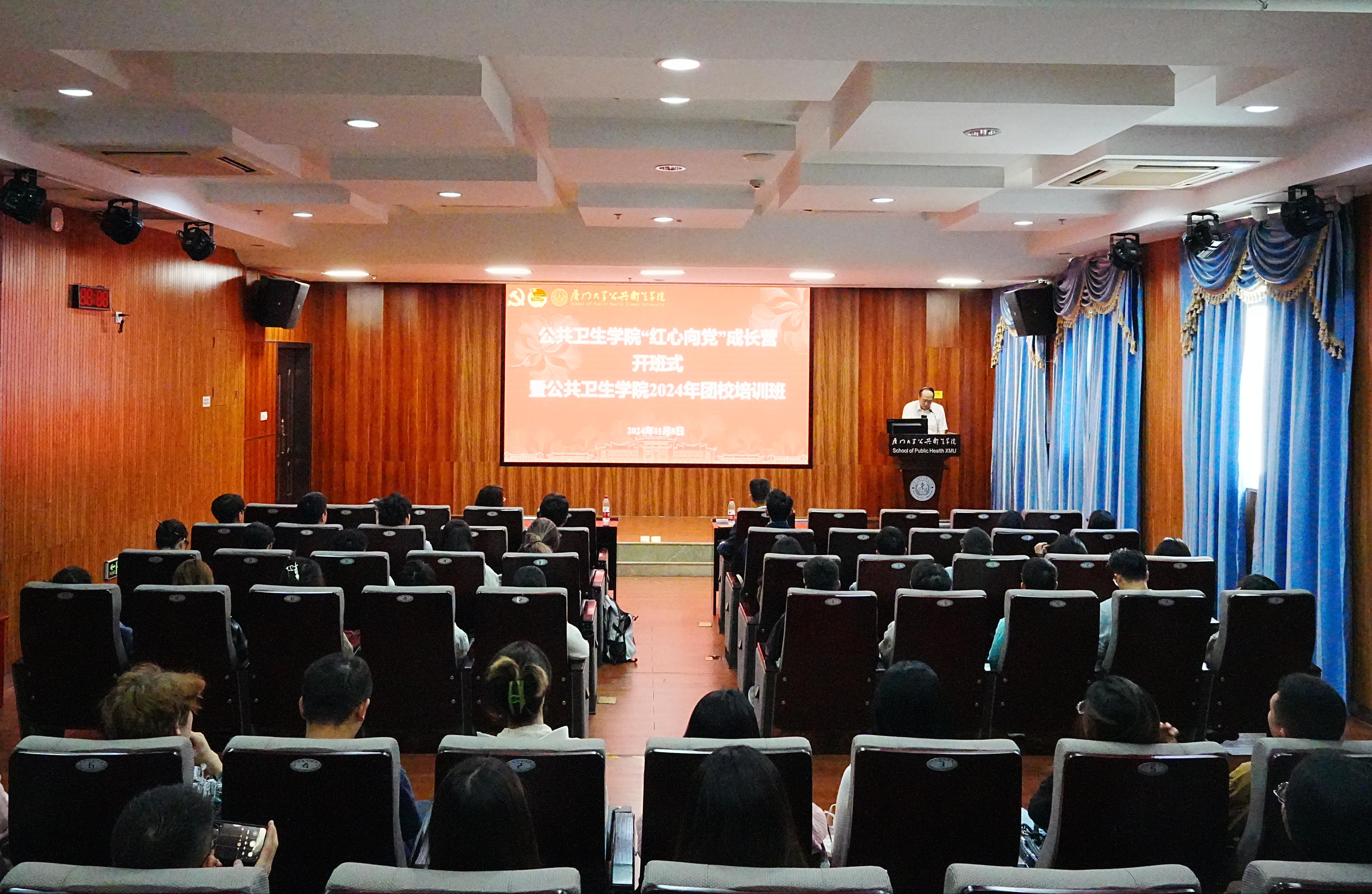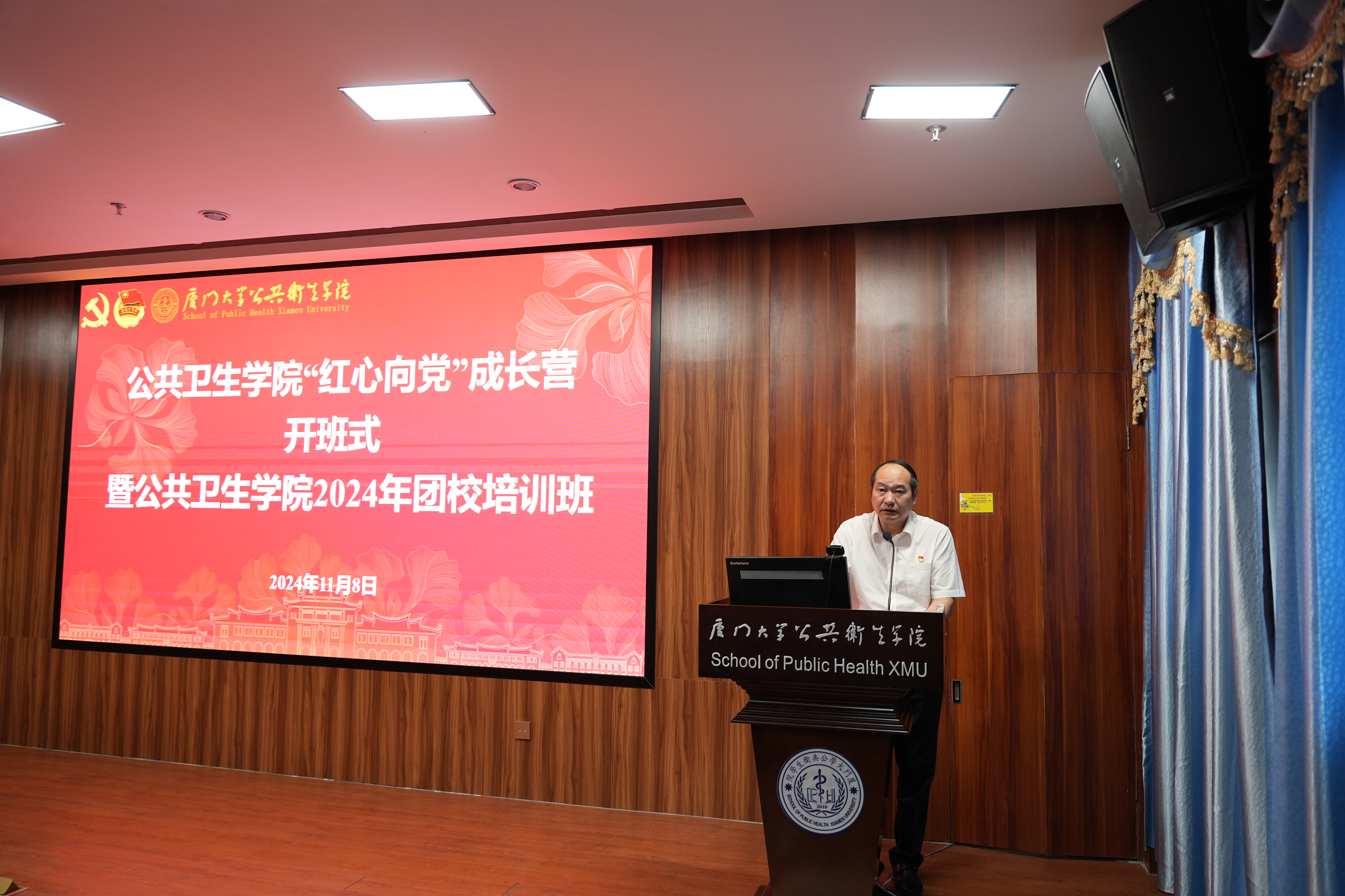 为深入学习贯彻习近平新时代中国特色社会主义思想,贯彻落实党的二十届三中全会精神,进一步提高新发展党员和入党积极分子的思想政治素质和理论水平,坚定理想信念,2024年11月8日上午,厦门大学公共卫生学院“红心向党”成长营开班式、团校暨学生骨干培训第二次理论学习在曾宪梓楼101顺利举行。厦门大学党委党校常务副校长、马克思主义学院教授张艳涛,学院党委书记张琥出席开班仪式。学院本研100多名预备党员、入党积极分子和学生干部参加此次培训。