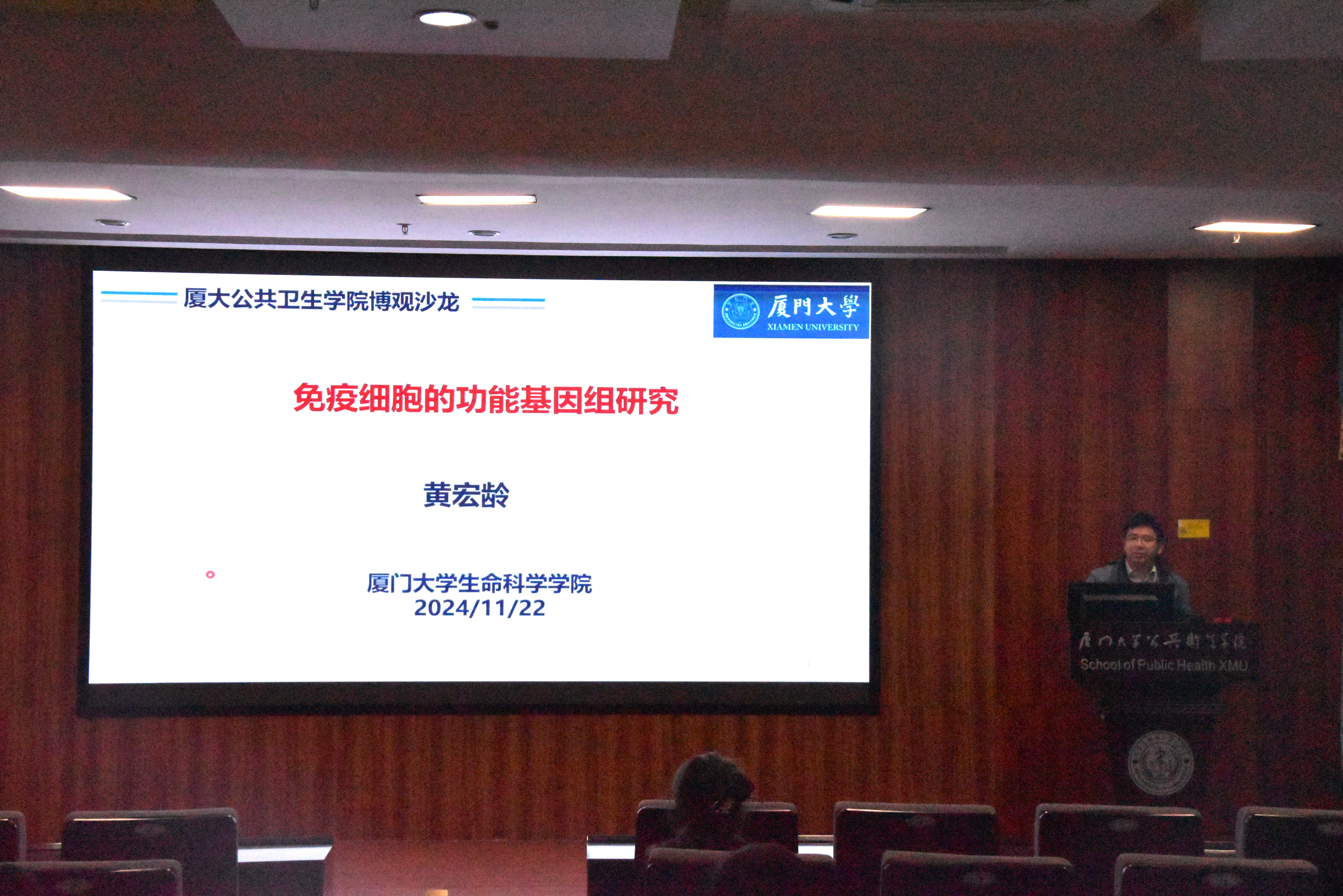 2024年11月22日,公共卫生学院在曾宪梓楼101报告厅成功举办了第二十二期“博观青年沙龙”学术讲座,主题为《免疫细胞的功能基因组研究》。本次沙龙邀请到厦门大学生命科学学院的黄宏龄教授担任主讲嘉宾,公共卫生学院张天英教授主持。