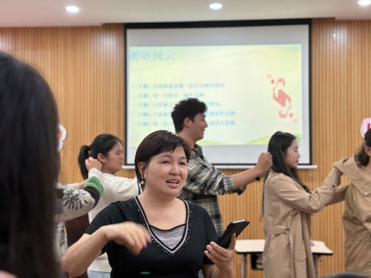 活动伊始,李益群以一组简单的手指操暖场,迅速拉近了师生距离。紧接着,一系列趣味盎然的游戏环节展开,同学们在欢声笑语中增进了解,享受了一场舒心减压的旅程。活动尾声,同学们围圈而坐,分享彼此的梦想与感悟,将感动化为前行的动力。