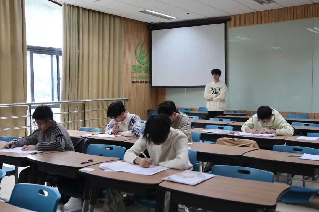 为了确保考试的公平性和有效性,志愿者模拟考研实际场景,在教室摆放桌椅,设置监考台并配备必要文具与设备。考前与考生明确考试规则和注意事项,考试过程中流动巡视,从严把关,积极营造严肃的考场氛围。