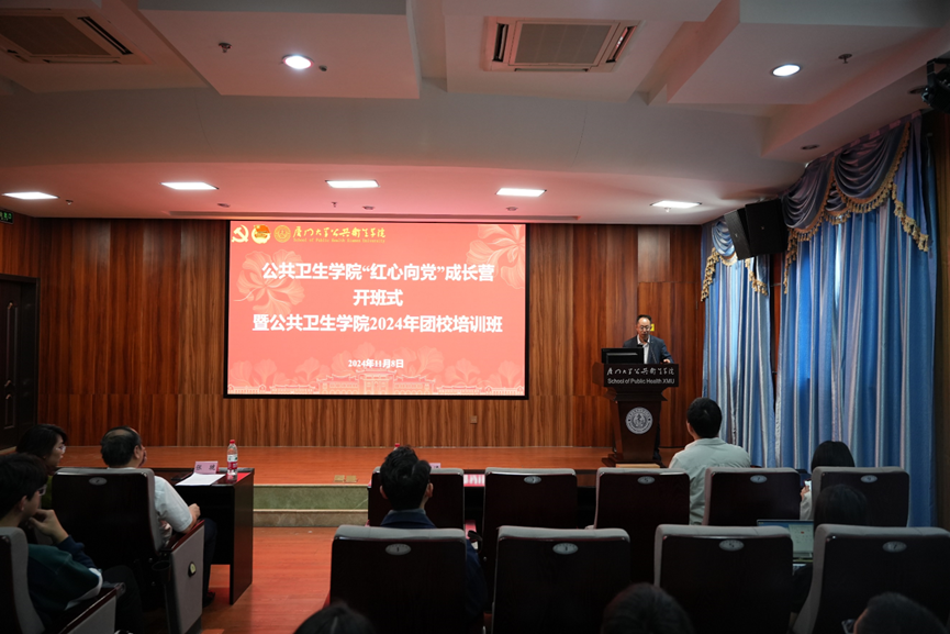 10月30日,第十三期学生骨干培训班开班仪式于曾宪梓楼101报告厅举行。学院党委副书记刘君彬作动员讲话,他以“保障人民健康,展现公卫担当”为切入点,对全体学员提出三点要求和期望:一是成为思想上的先行者,在理论学习中锤炼政治品格,坚定理想信念;二是成为行动上的践行者,在团队协作上提升综合素质,推动学院发展;三是成为风采上的标杆者,在先进事迹里学习榜样,奋勇争先。