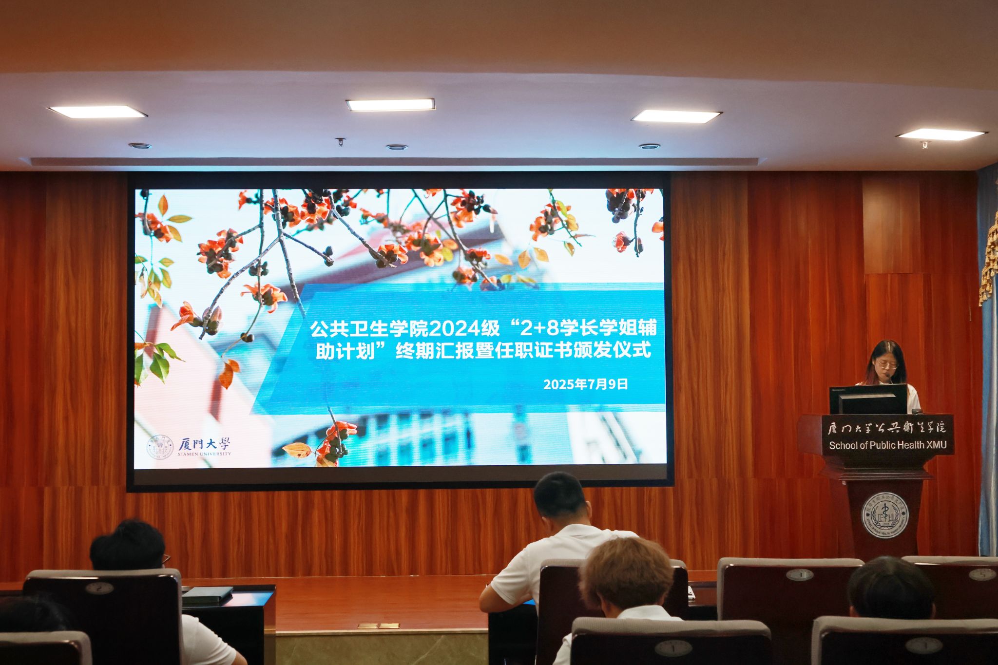 7月9日,学院在曾宪梓楼101报告厅举办2024级“2+8学长学姐辅助计划”终期汇报暨任职证书颁发仪式。学院团委副书记周钧庭、辅导员戴秀芬、秘书郑一鸣、“2+8”计划组长及2024级全体本科生参与活动。