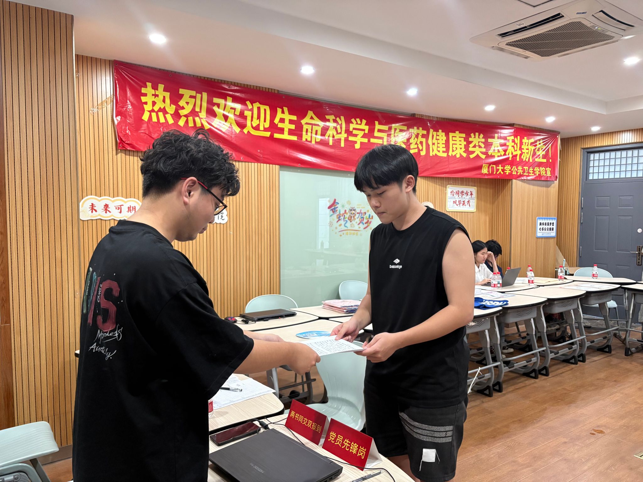 今年,学院设立“党员先锋岗”与“两书同交”双报到区,报到当日共有51名新生递交入党申请书,展现出新时代青年的理想与担当。