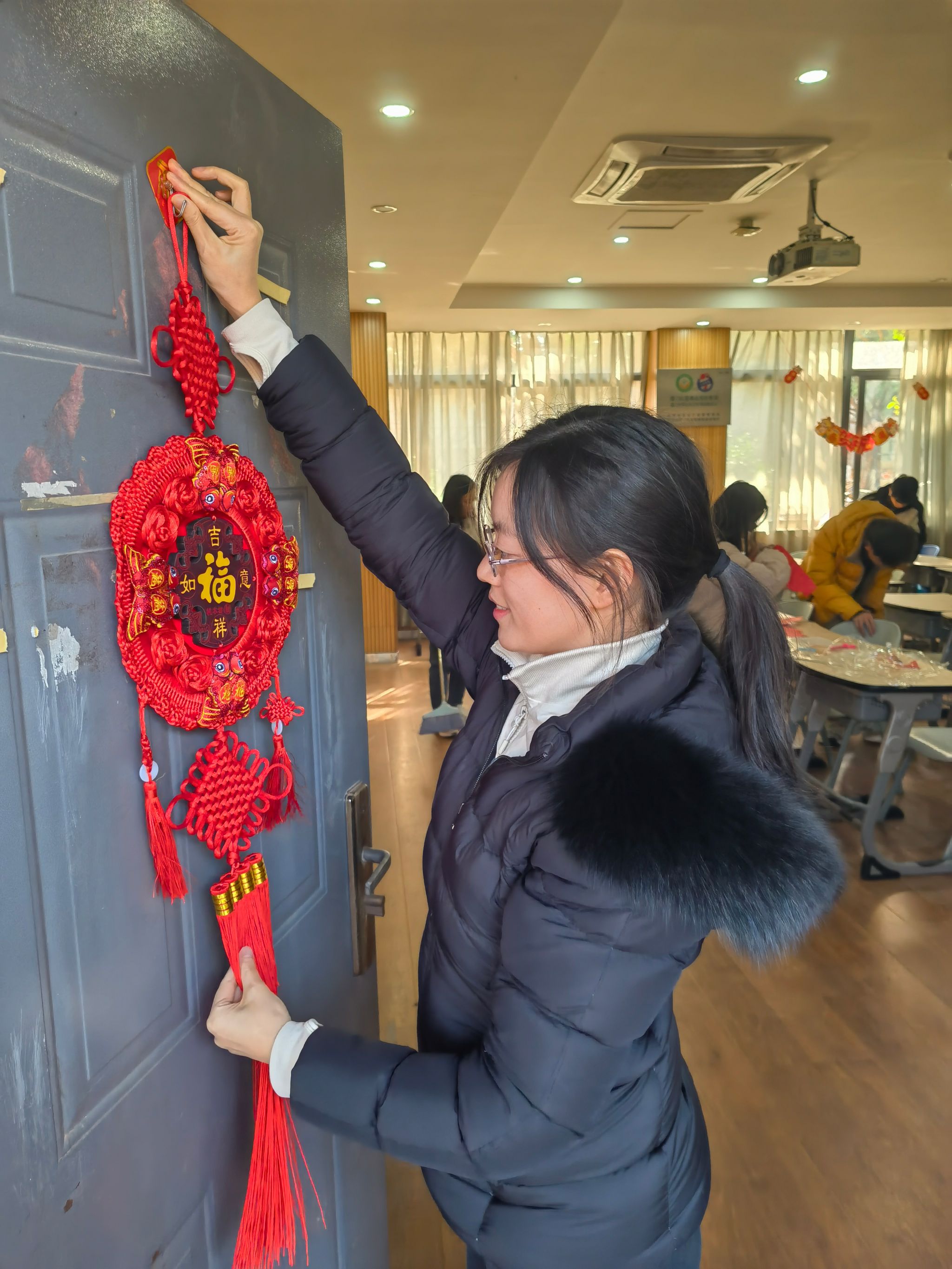 活动现场,师生党员分工有序、热情投入。清扫组对社区活动室、走廊、自习区等区域进行了全面清洁,使社区环境焕然一新,为同学们创造了更加舒心的学习生活空间。装饰组一同剪制窗花,并将窗花与满载祝福的春联、福字张贴在活动室门窗上,为社区增添了浓厚的新春气息。活动中,师生党员还分享了各自家乡的新春习俗与传统文化知识,现场气氛融洽,在劳动实践中感受传统文化魅力,在交流互动中深化师生情谊。