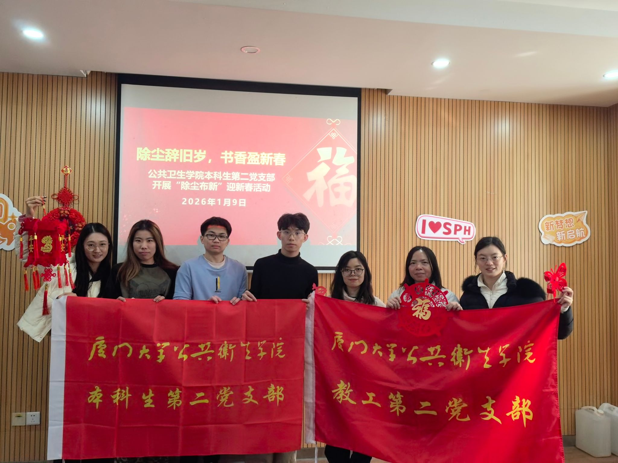 为营造整洁舒适、温馨祥和的社区氛围,弘扬中华优秀传统文化,1月9日,学院教工第二党支部与本科生第二党支部在映雪一站式学生社区开展“除尘布新辞旧岁”活动。师生党员共同行动同行,用实际行动让“温暖公卫”的育人温度浸润校园。