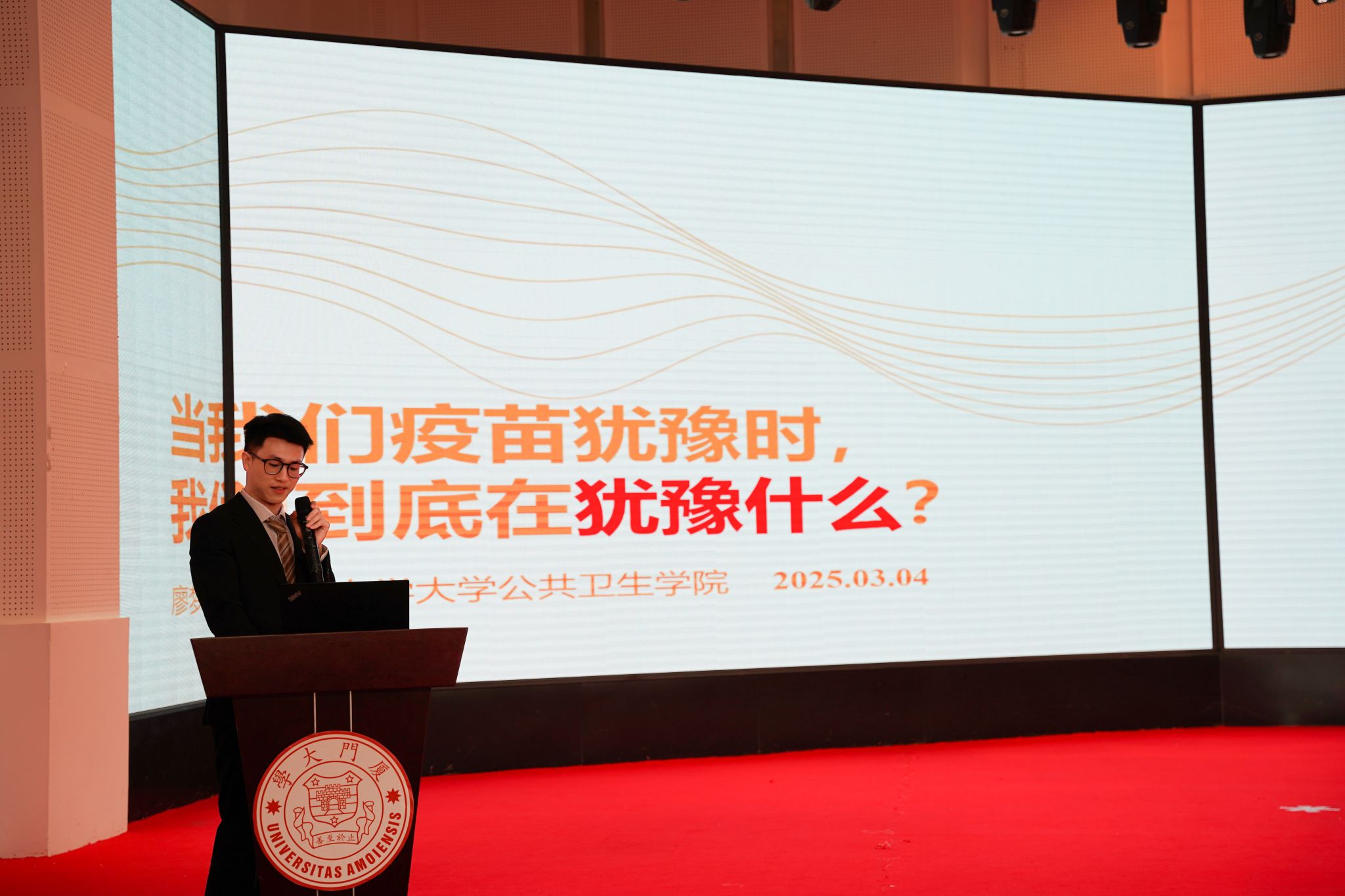 廖梦俊以“当我们疫苗犹豫时,我们在犹豫什么”为题,结合国内外典型案例,深入剖析了疫苗犹豫背后的多元因素,指出其不仅是个人选择,更涉及科学认知、社会心理与公共健康等维度。此外,他分享了学院“蒲公英行动”团队正在开展的课题研究,探索利用AI聊天机器人等创新方式开展健康科普,以更智能的传播手段提升公众健康素养。