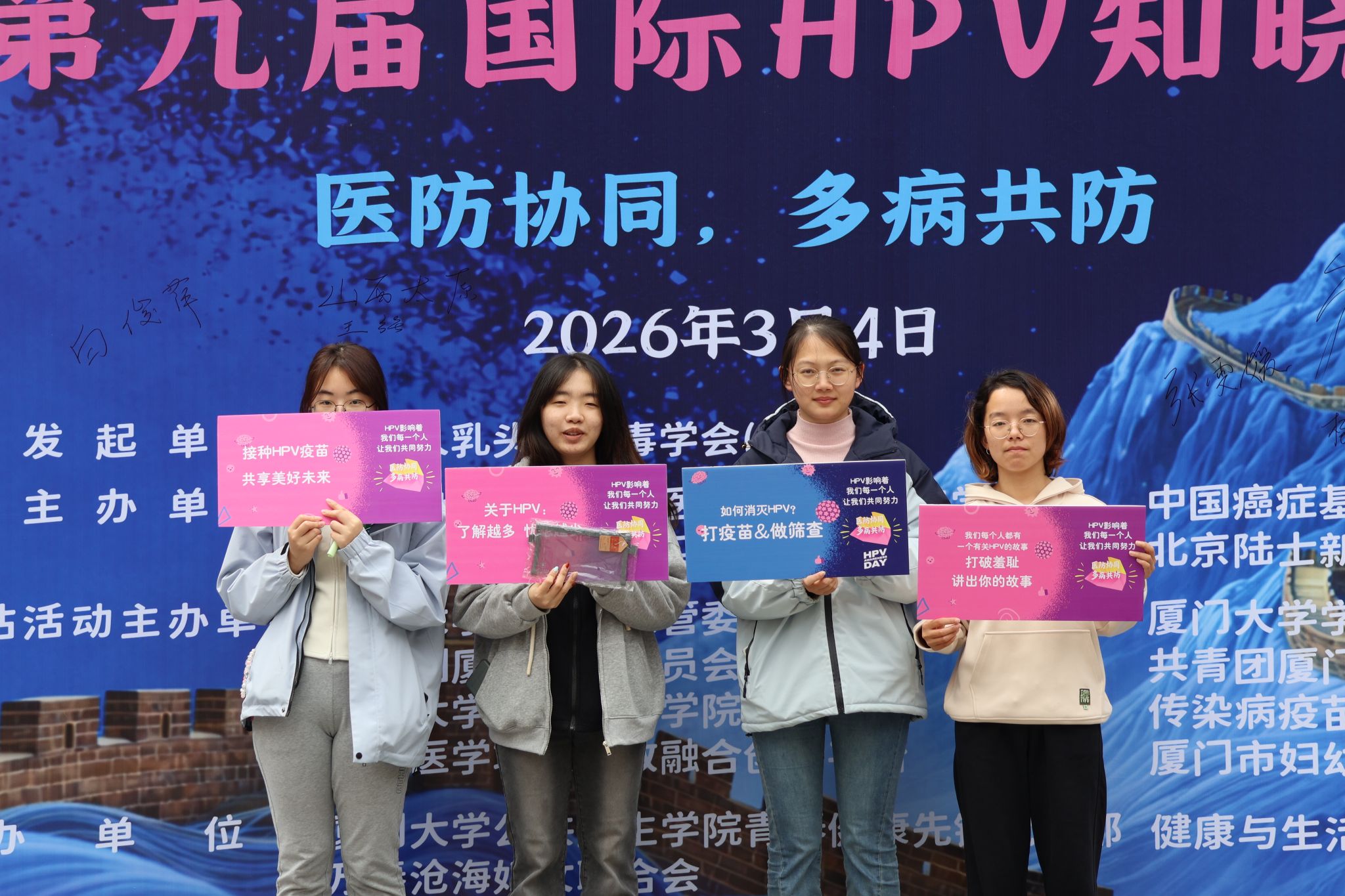 人乳头瘤病毒(HPV)是一种可通过性接触、母婴传播及皮肤黏膜接触等途径侵袭人体皮肤与黏膜上皮细胞的病原体,其感染可引发湿疣、宫颈癌等多种疾病,严重威胁女性健康。为提高公众对HPV的认知水平,加速消除宫颈癌威胁,第九届“国际HPV知晓日”厦门站系列活动于3月4日在厦门大学思明校区与翔安校区同步举办。