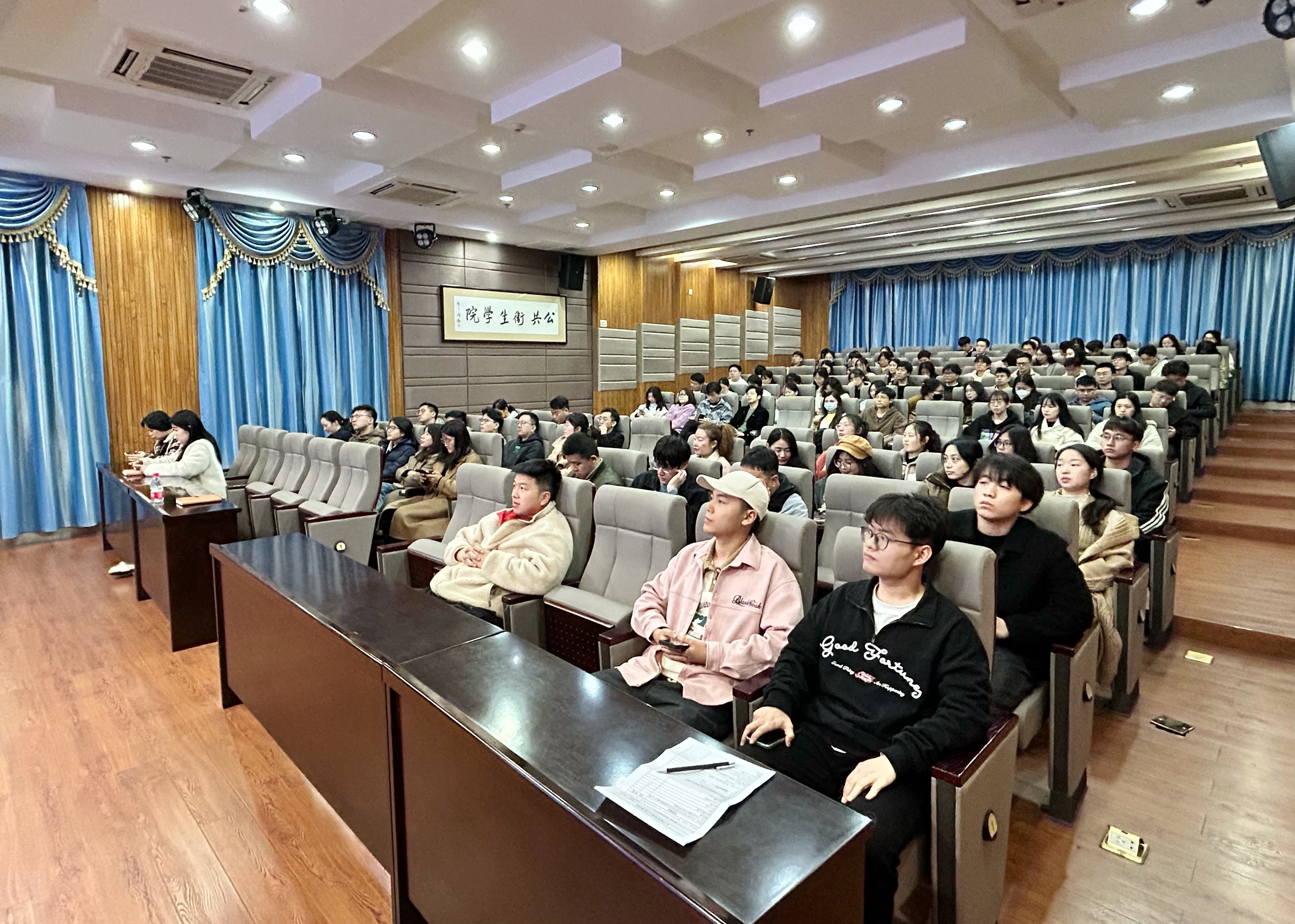 蒲晓业首先介绍了我院2023届毕业研究生的总体毕业落实情况,为2024届毕业生提供就业方向参考。他建议,同学们要平衡好学业和就业之间的时间分配,在学业上多和导师联系互动,持续推进毕业论文写作,并指出当前毕业人数不断扩大,就业形势严峻,同学们要积极寻业、择业、就业,在就业上结合个人兴趣特长和实际进行合理定位,积极应聘合适的岗位。