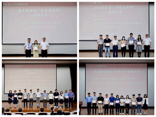 表彰宣读完毕后,学院为获得曾定奖教金“杰出贡献奖”“卓越业绩奖”“突出表现奖”的获奖团队和个人颁发奖杯和荣誉证书,为获得曾定奖教奖学金、养生堂奖教奖学金、万孚奖教奖学金和菲鹏奖教奖学金的师生颁发荣誉证书。