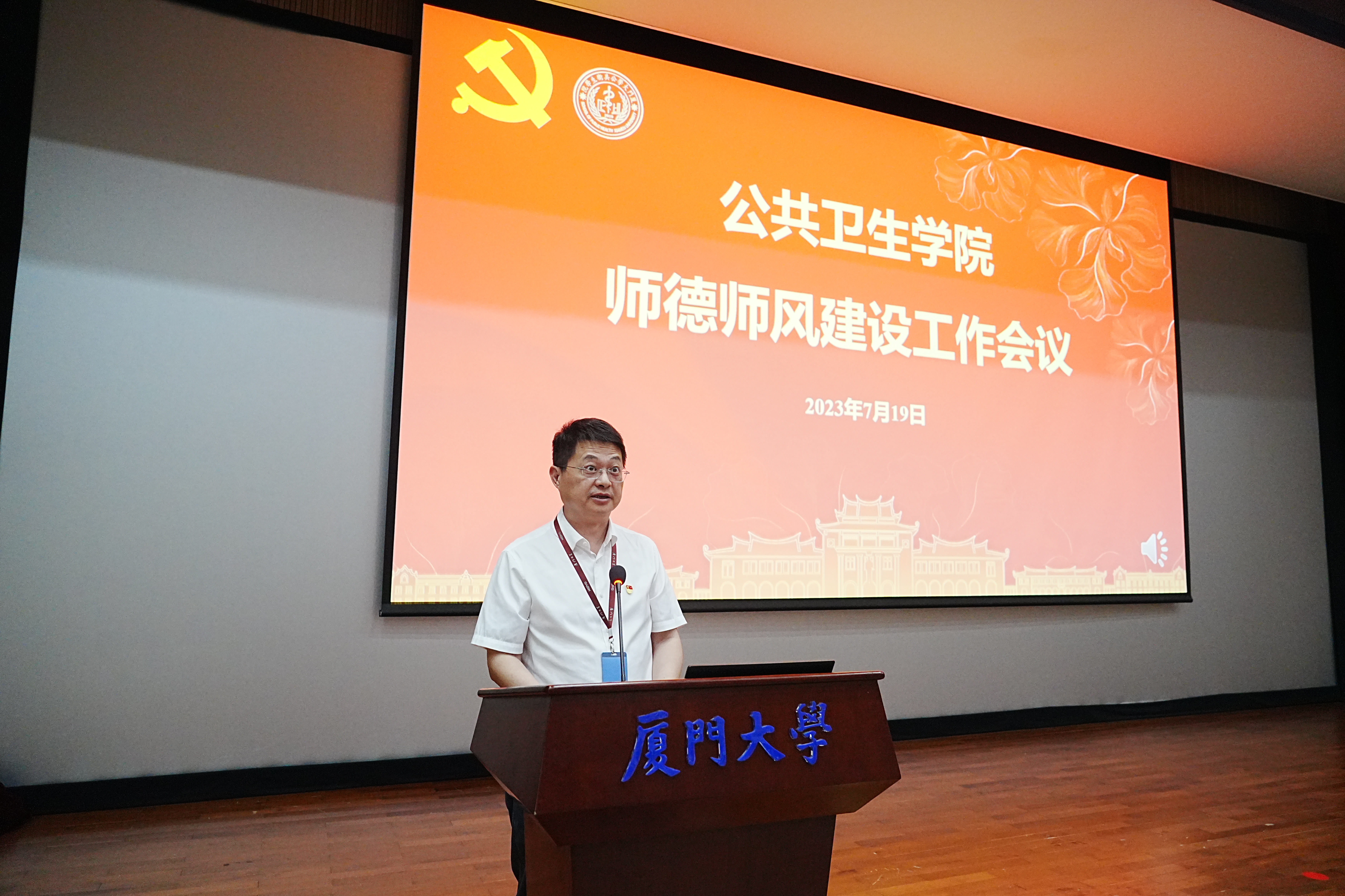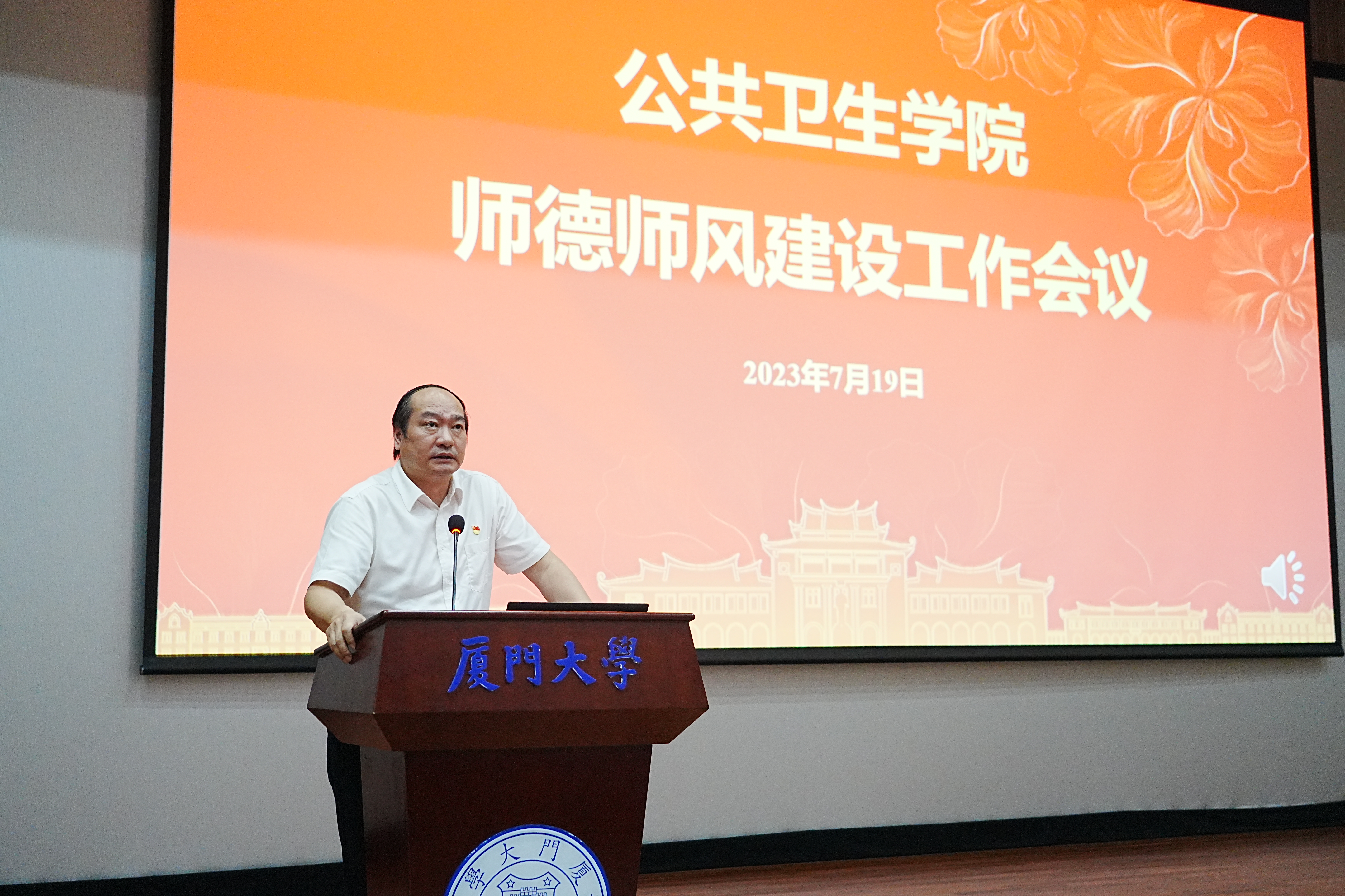 院长张军向与会教师传达了校党委书记张荣在厦门大学教师工作委员会2023年第一次会议(扩大)暨师德师风建设工作推进会上的讲话精神。他指出,一要提高政治站位,深刻领会习近平总书记关于师德师风的重要论述。从党和国家事业发展大局出发,充分认识全面加强师德师风建设的极端重要性和紧迫性,进一步增强做好师德师风建设的思想自觉、政治自觉和行动自觉。二要正视现实问题,准确把握师德师风建设面临的新形势新挑战。守好底线,对标高线,从细处入手、从实处发力,切实加强师德师风建设,加快建设高质量教师队伍,为我校建设中国高等教育东南中心的使命任务贡献力量。三要坚持德法并举,推进学校师德师风建设各项工作走深走实。强化政治思想引领,突出正向精神激励,加强师德学习教育,严格师德考核监督,营造全员重育、教师乐教、学生爱学的育人生态。四要加强组织领导,全面夯实师德师风建设工作责任机制。加强党对教师工作的全面领导,不断完善工作体系,明确任务清单,推进层层落实,严肃追责问责,全面加强师德师风建设,全面深化教师队伍建设改革,为建设中国特色世界一流大学提供强有力的教师队伍支撑。