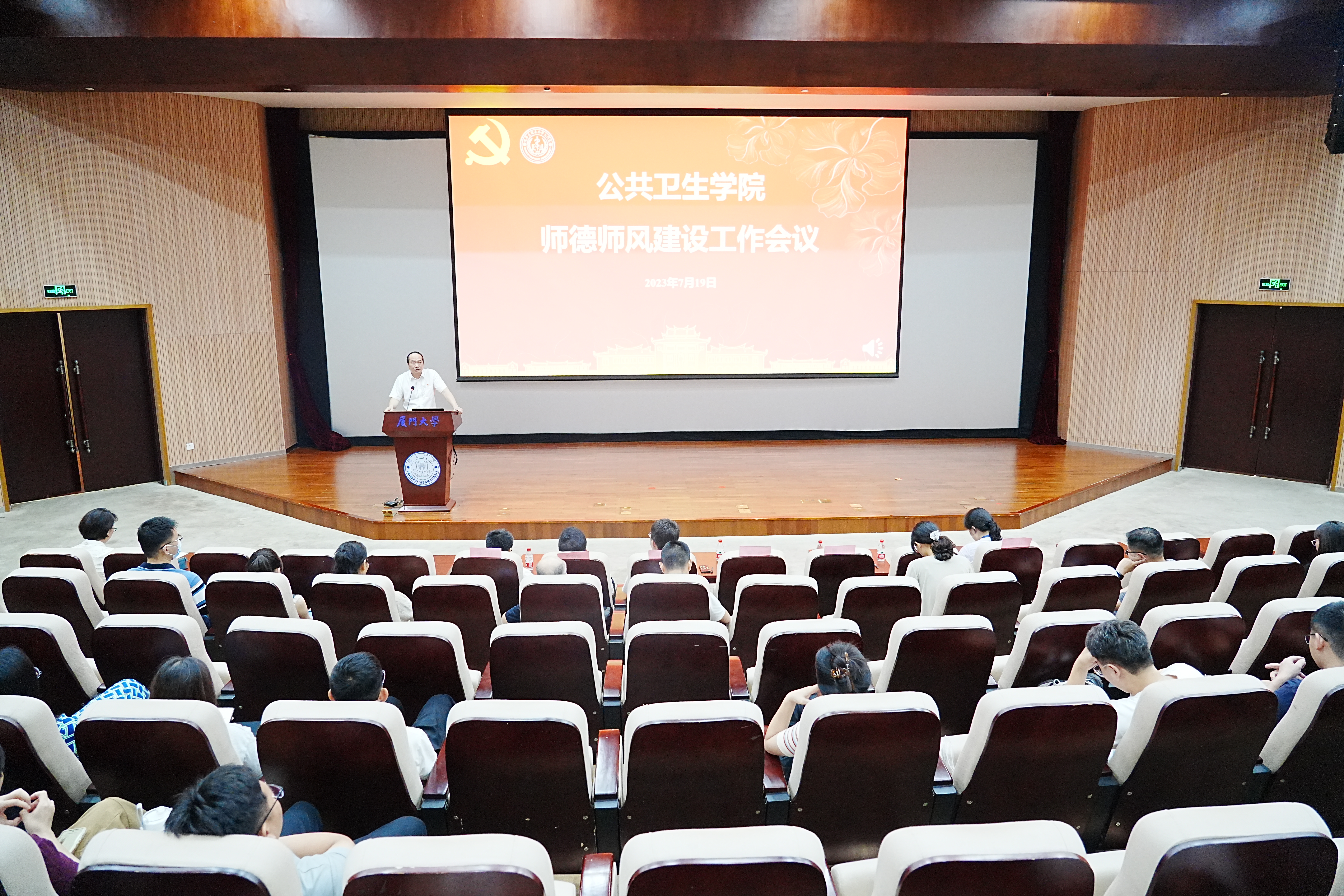 为深入学习党的二十大精神,贯彻落实教育部关于在教育系统开展师德集中学习教育的部署,进一步加强教师思想政治和师德师风建设,切实提高教师思想政治素质和职业道德水平,7月19日中午,在图书馆一号报告厅召开公共卫生学院师德师风建设工作会议。学院党政领导,全体教师参加会议。院党委副书记庄曦主持会议。
