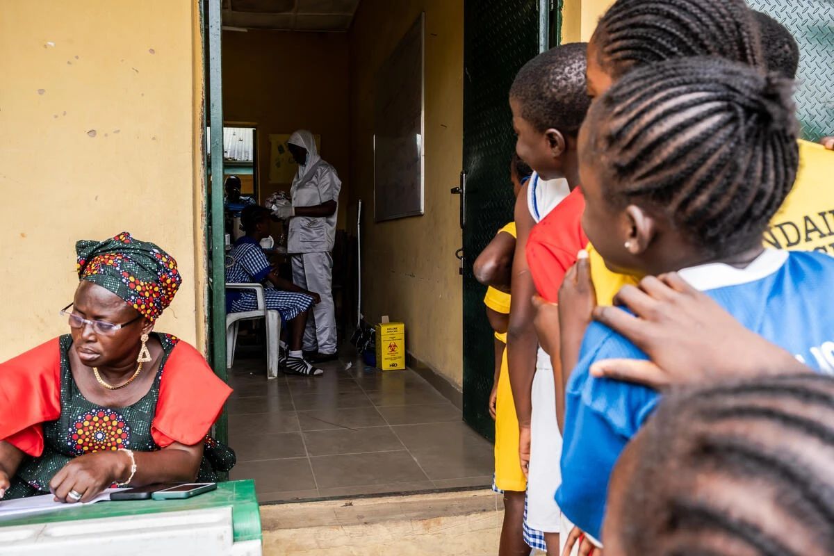■ 2023年11月1日,尼日利亚拉各斯州,在针对9至14岁学龄女童的全国HPV疫苗接种活动的第一阶段,女孩们等待接种HPV疫苗。图片来源:盖茨基金会